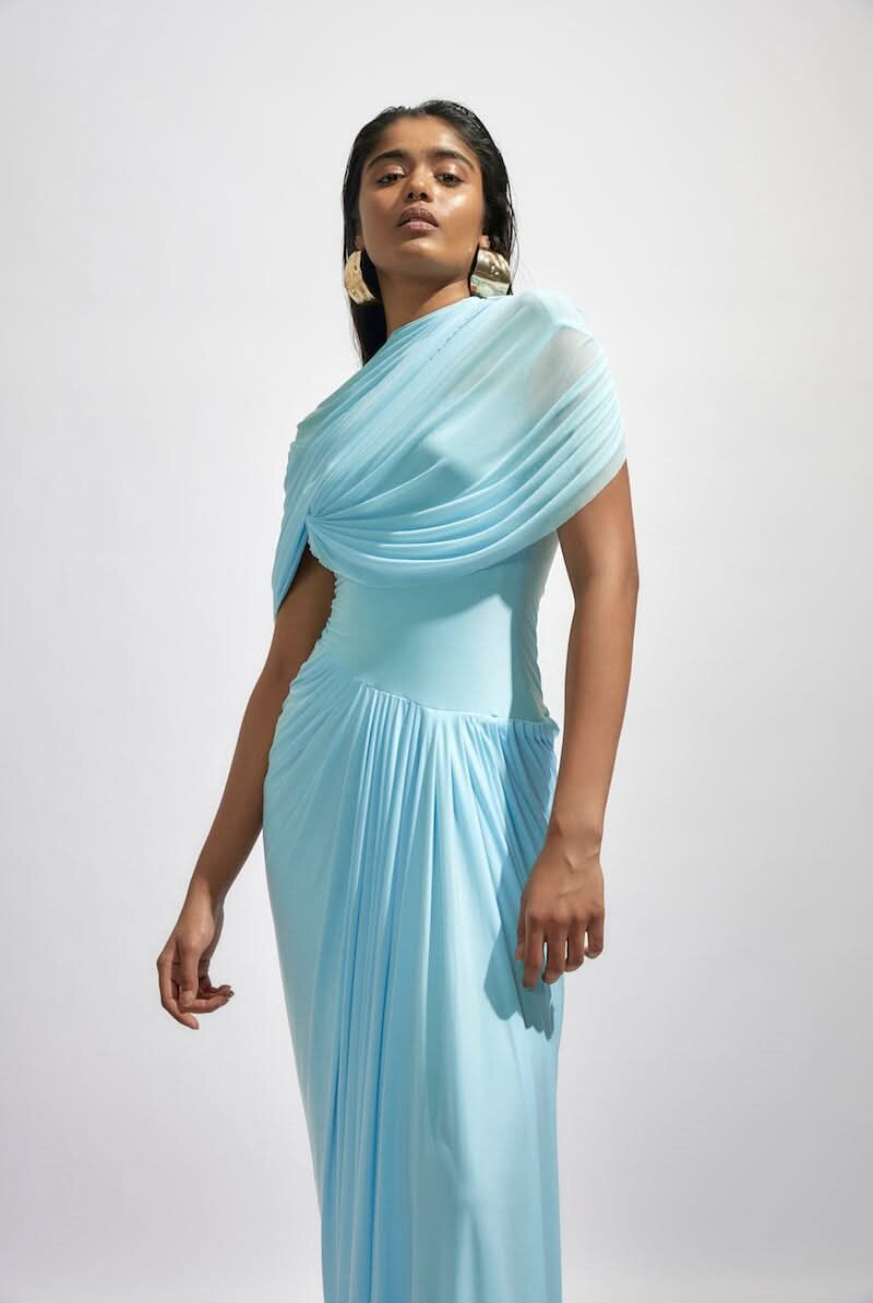 11 değerlendirmeCahya Drapeli Maxi Elbise – Mavi