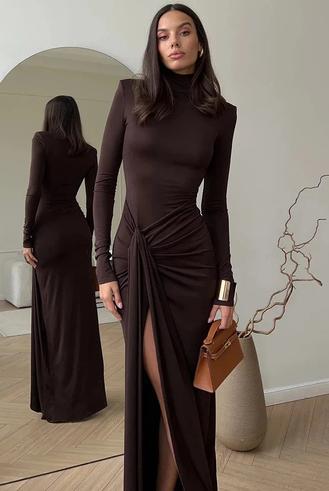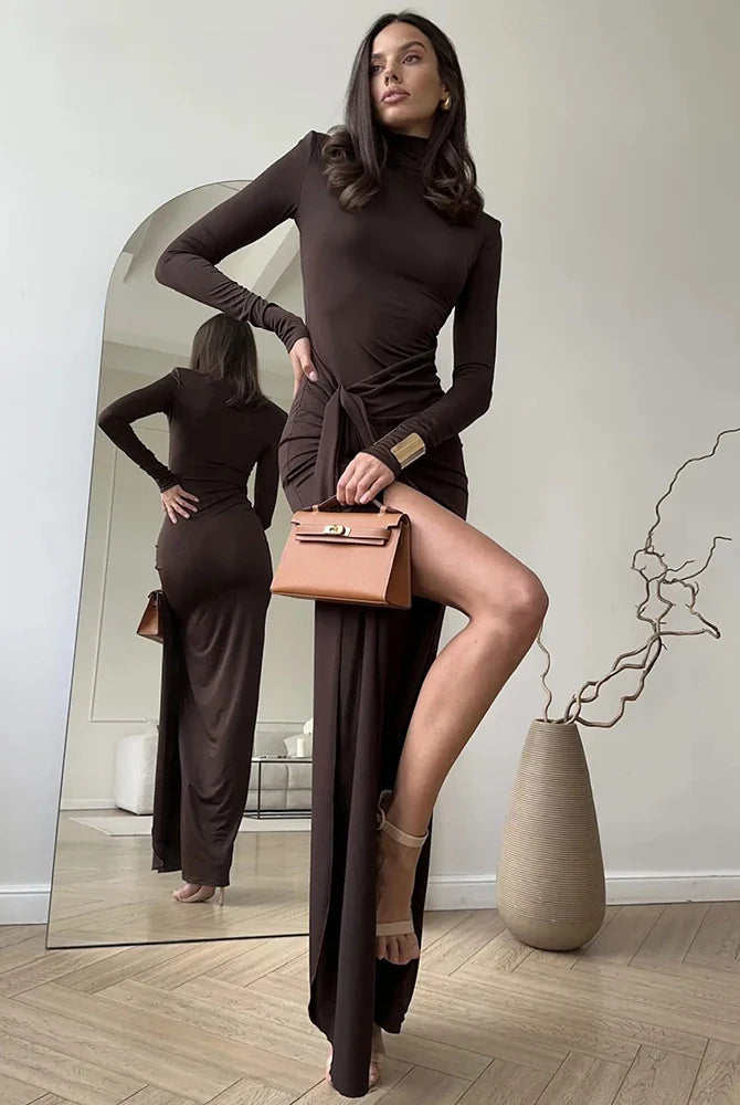 11 değerlendirmeFiara Drapeli Maxi Elbise – Kahverengi