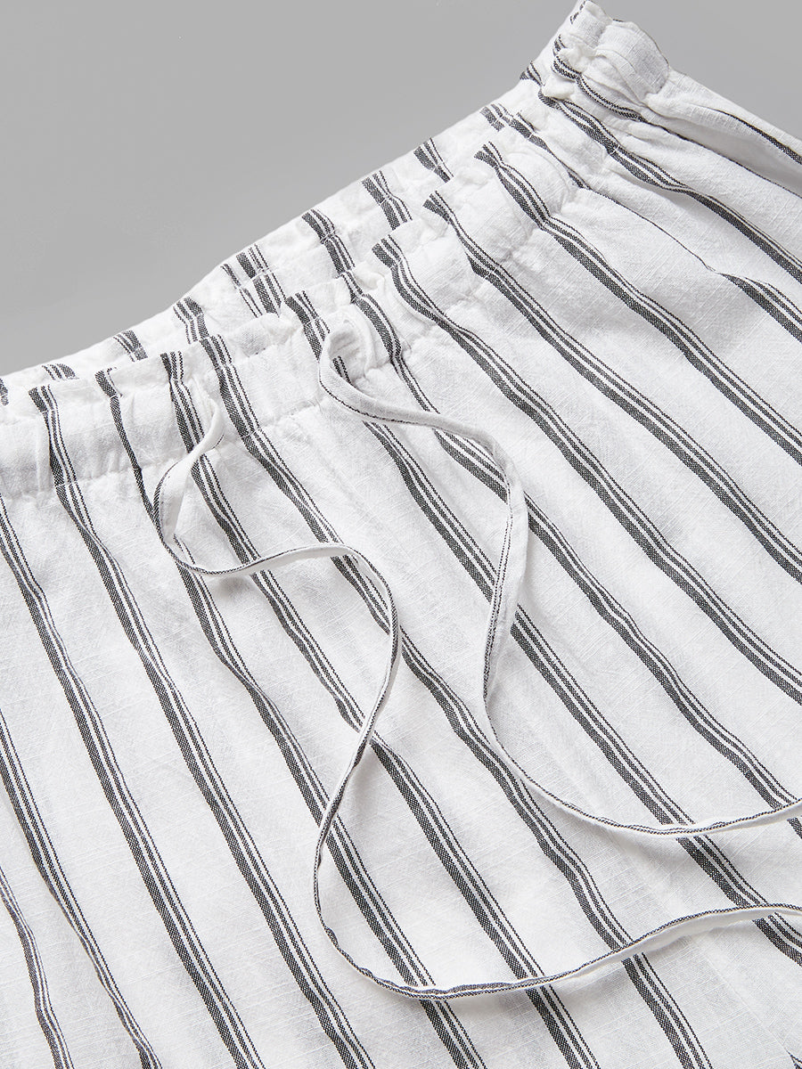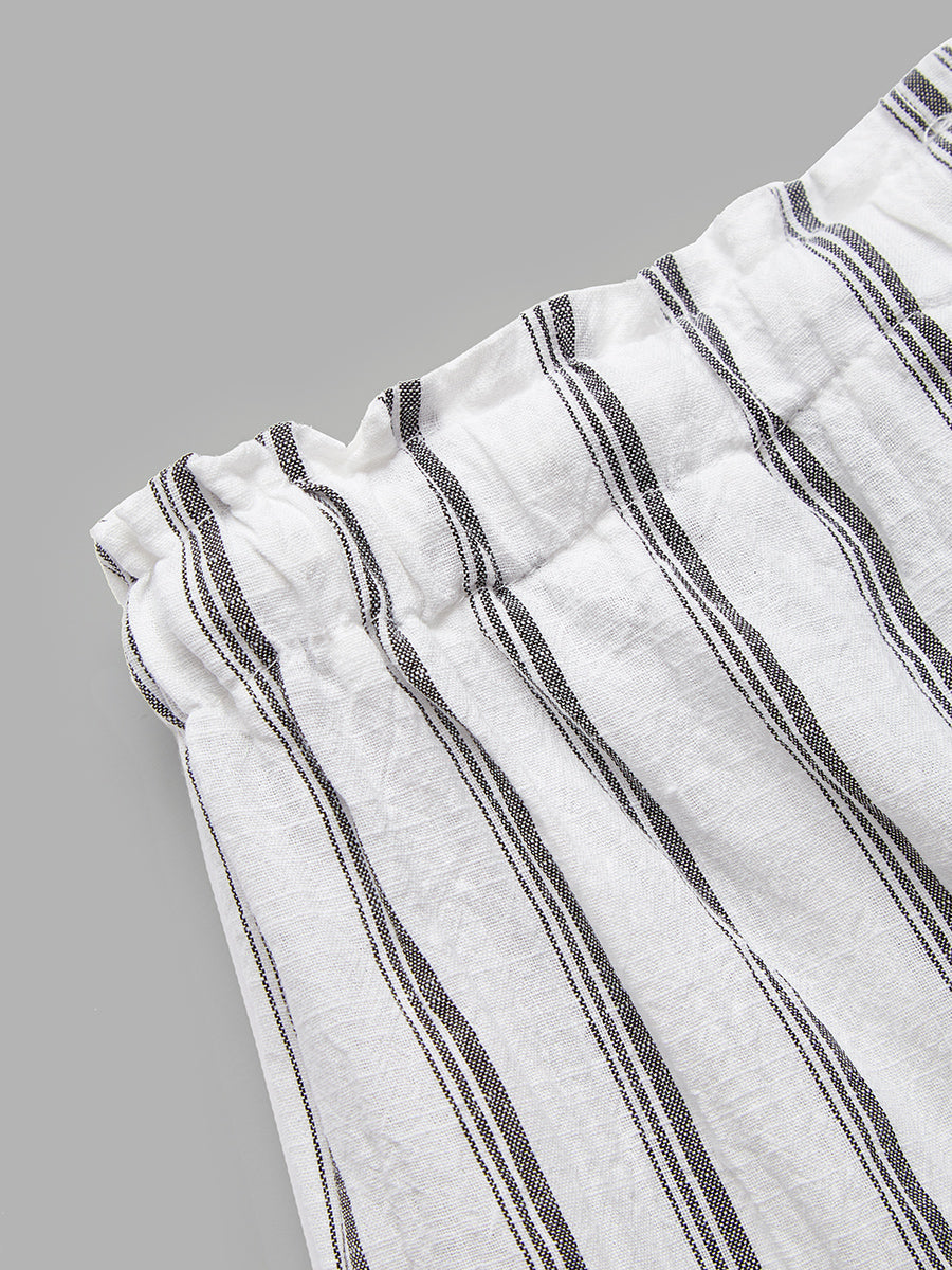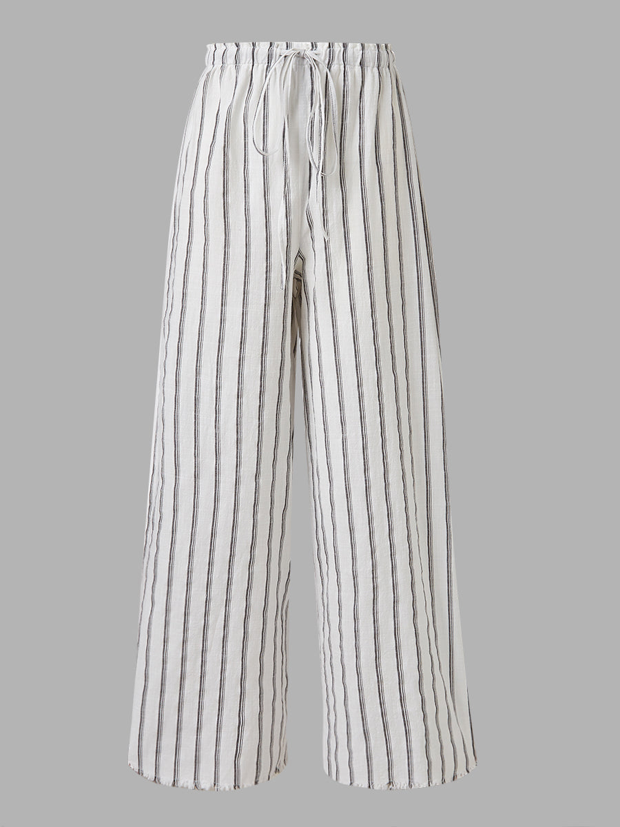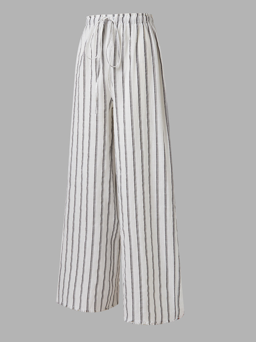 Gardırobunuzu dikkat çekici Pamuklu Çizgili Püsküllü Geniş Paça Pantolon ile yükseltin. Hafif pamuklu kumaş gün boyu rahatlık sağlarken, ayırt edici çizgili desen herhangi bir kombine görsel bir hareket katar.