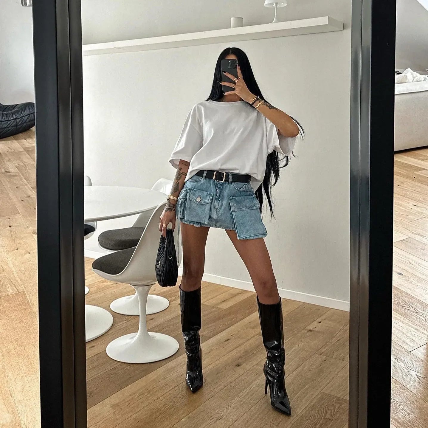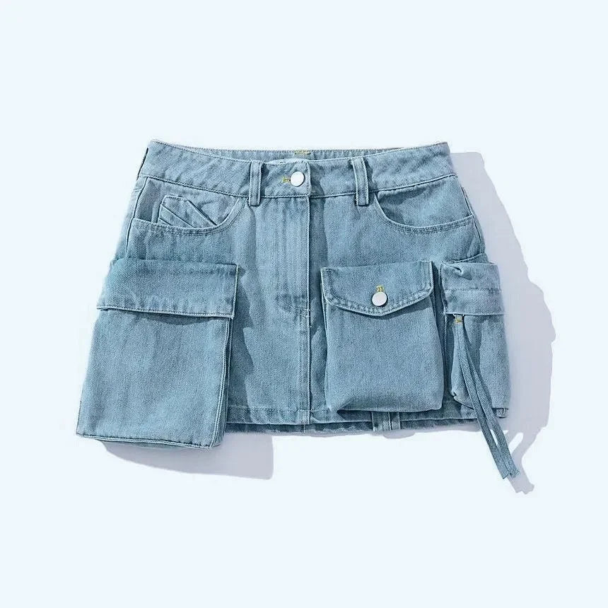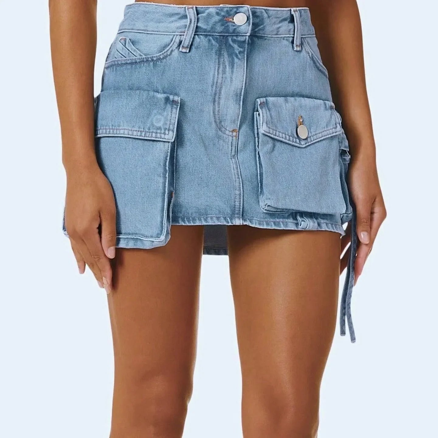 Düşük bel kesimi, cep detaylı modern tasarımı ve paçadaki hafif püskül efektiyle Denim Mini Etek, klasik jean şıklığını sokak stilinin enerjisiyle buluşturur. Yüksek kaliteli denim dokusu gün boyu rahatlık ve dayanıklılık sunar; düğmeli ön pat ise zahmetsiz kullanım sağlar.