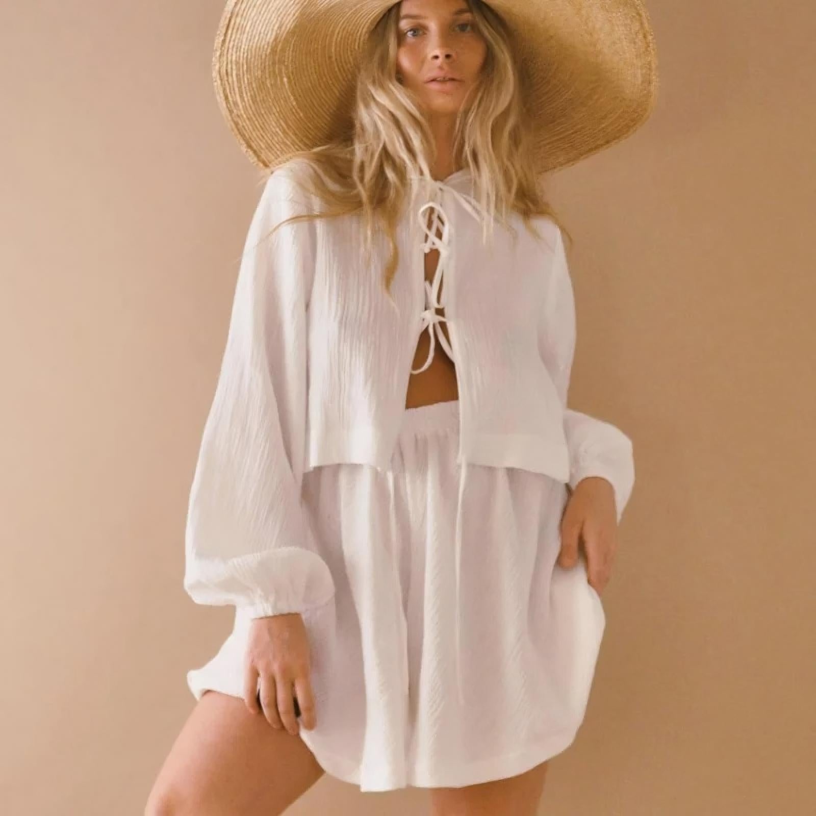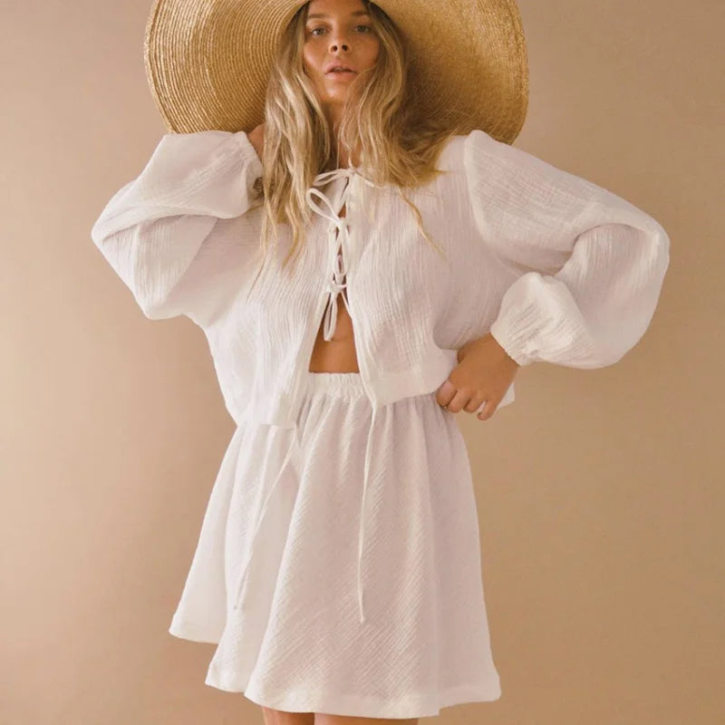 Bağlamalı Keten Takım, zamansız ve sofistike bir şıklık sunar. Pamuk ve keten karışımı, hafif ve nefes alabilen yapısıyla hem özel günlerde hem de günlük kullanıma uygundur. Doğal kumaş dokusuyla konfor sağlar ve her ortamda tarzınızı ön plana çıkarır.