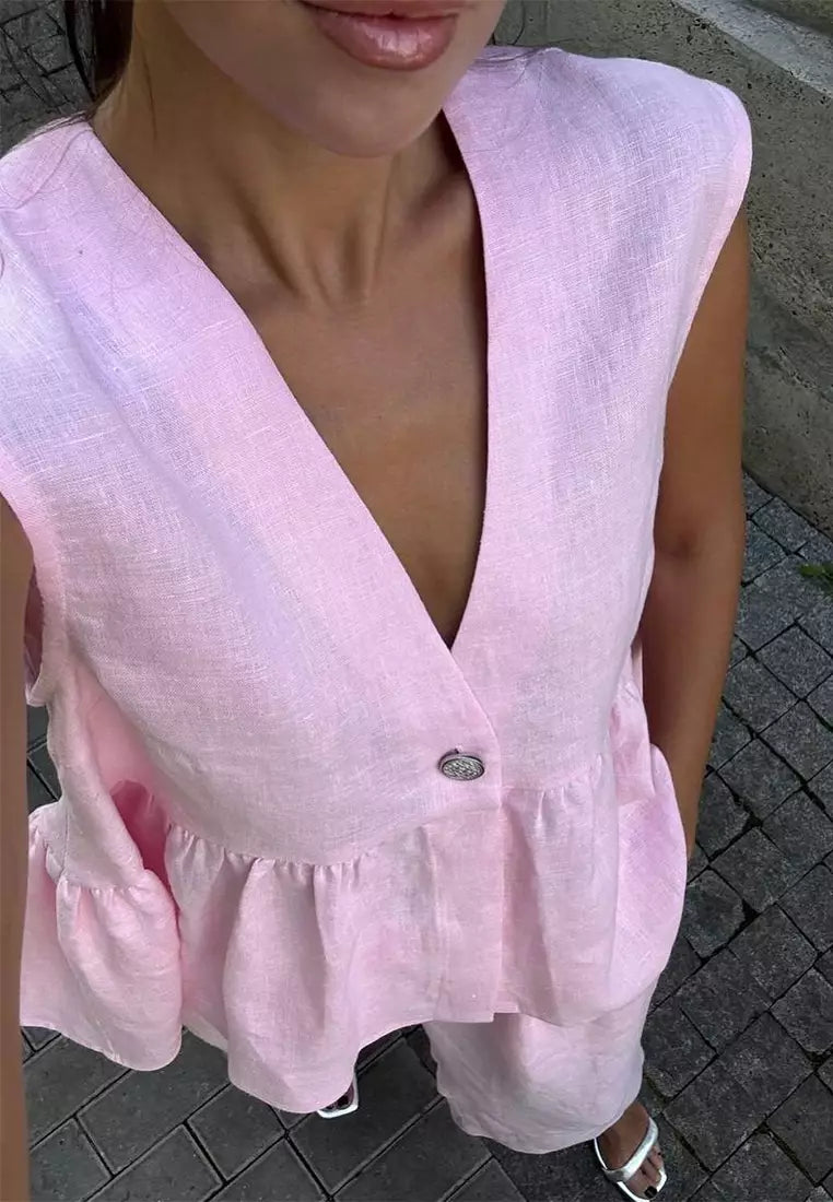 Zarif V yaka yeleği ve uyumlu pantolonu ile hem iş hem şehir stilinde şıklık sunan bu takım, sade ama güçlü bir görünüm yaratır. Rahat kalıbı gün boyu konfor sağlarken, modern tasarımıyla kombinlerinize sofistike bir hava katar. İster topuklularla ofiste, ister sneaker ile günlük stilinizde tercih edin; her ortamda stilinizi ön plana çıkarır.