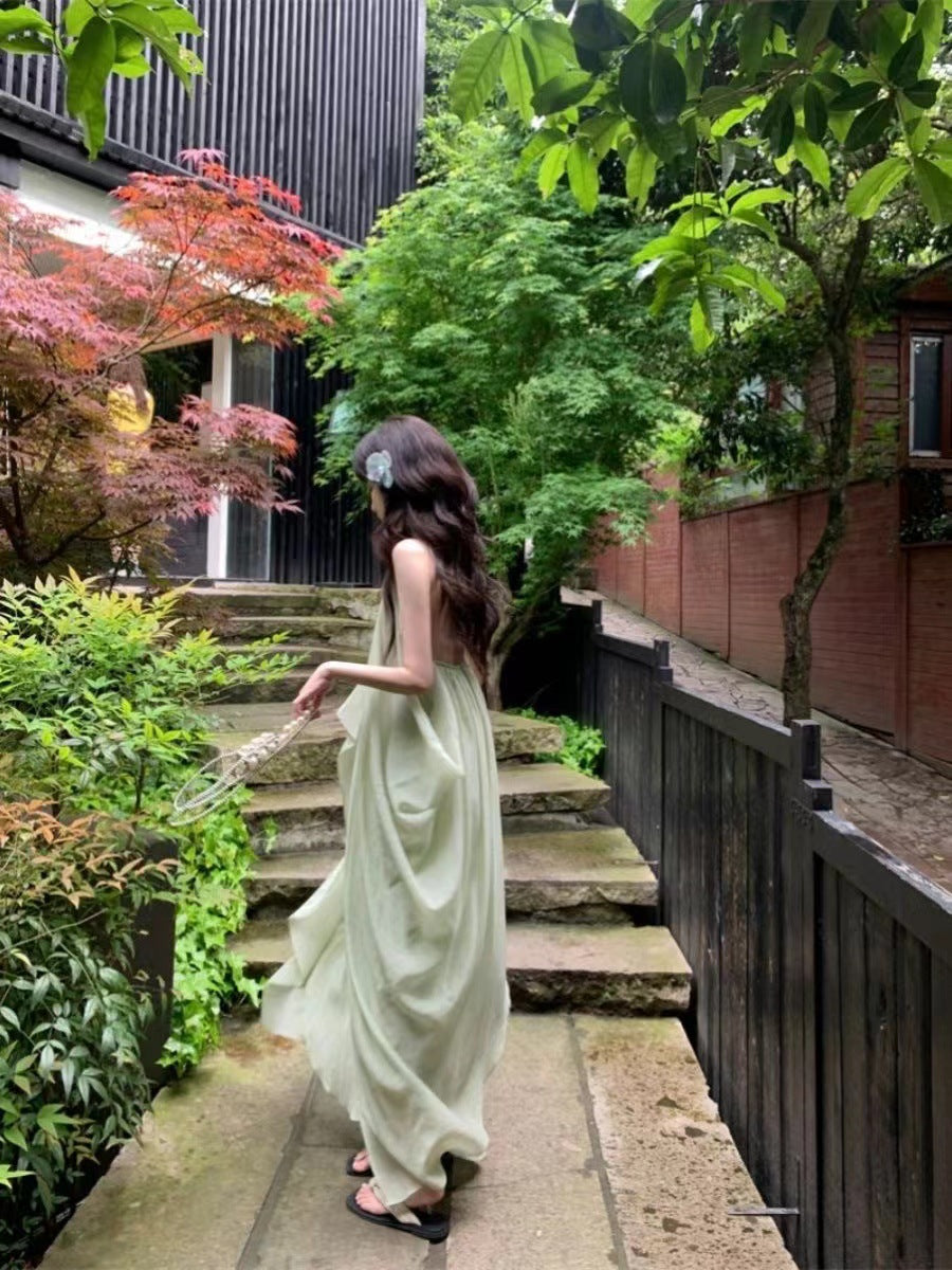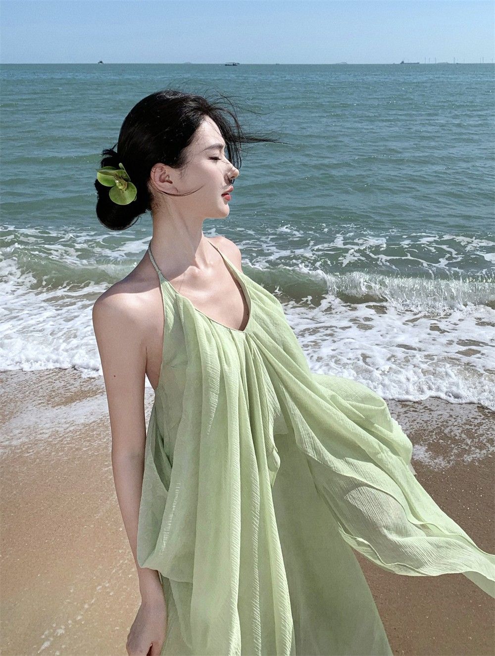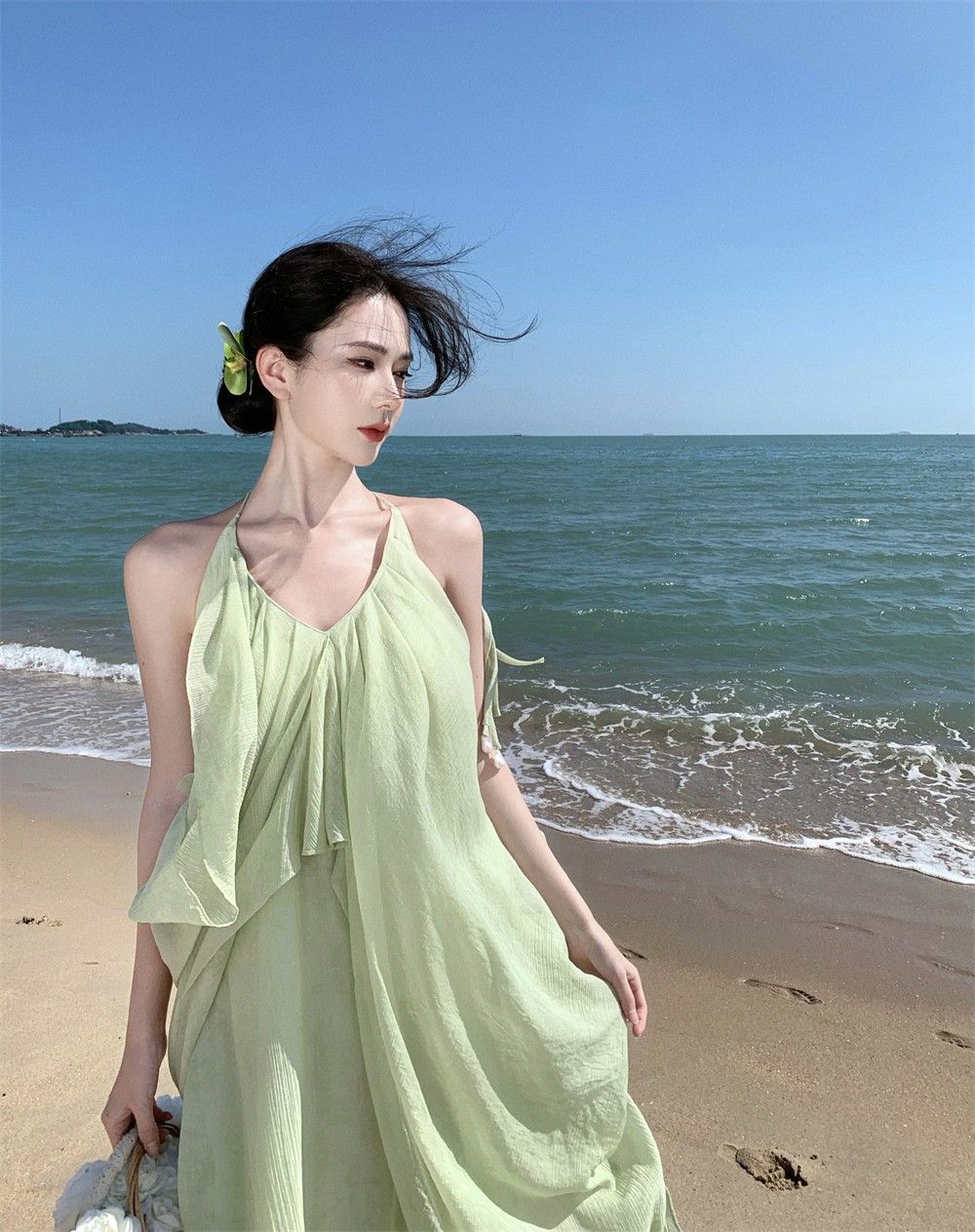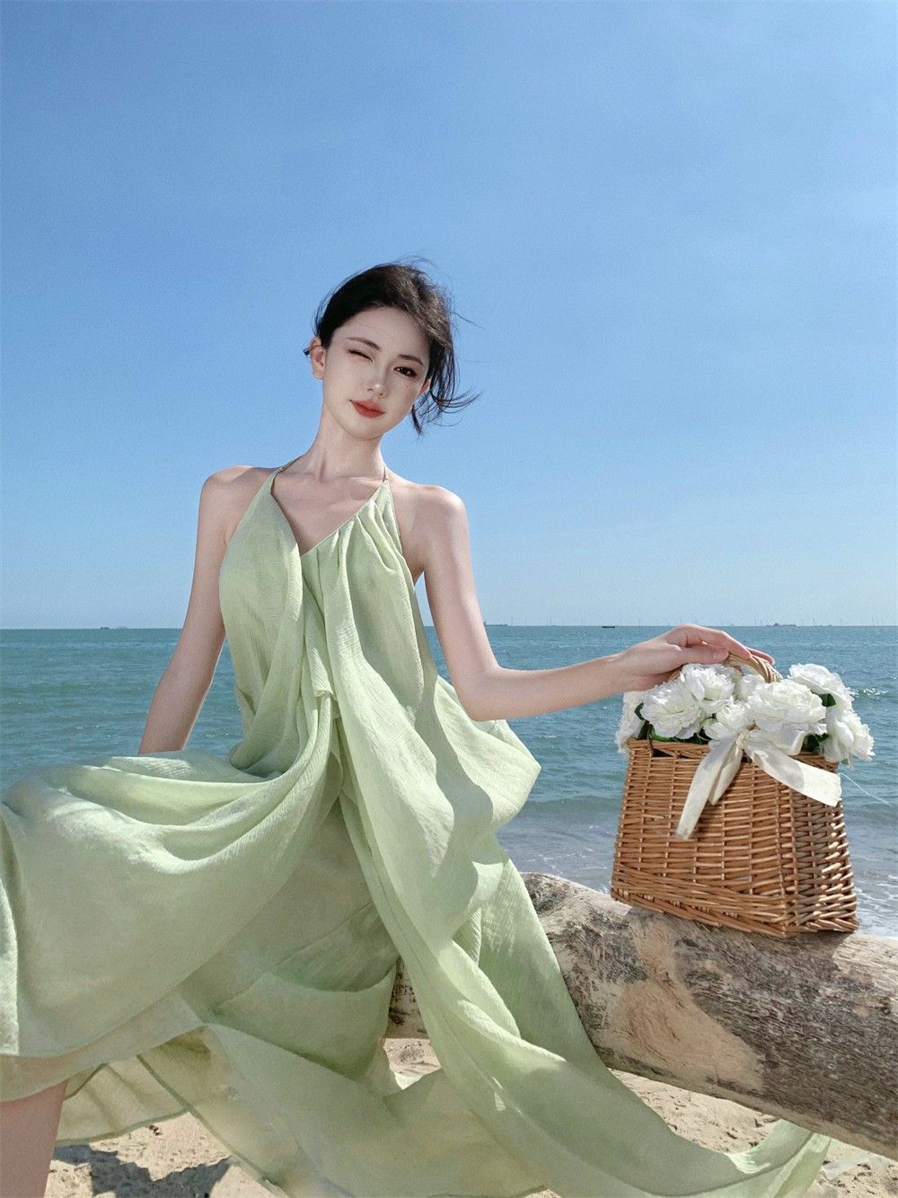 Sırt dekoltesi ve bağcık detayıyla feminen bir şıklık sunan bu elbise, akıcı pliseleriyle her adımda zarafet katar. Belden oturan formu, uzun ve dökümlü eteğiyle özel davetlerden tatil akşamlarına kadar her ortamda dikkat çekici bir stil yaratır. Canlı yeşil tonu ve minimalist tasarımıyla yazın enerjisini taşır.