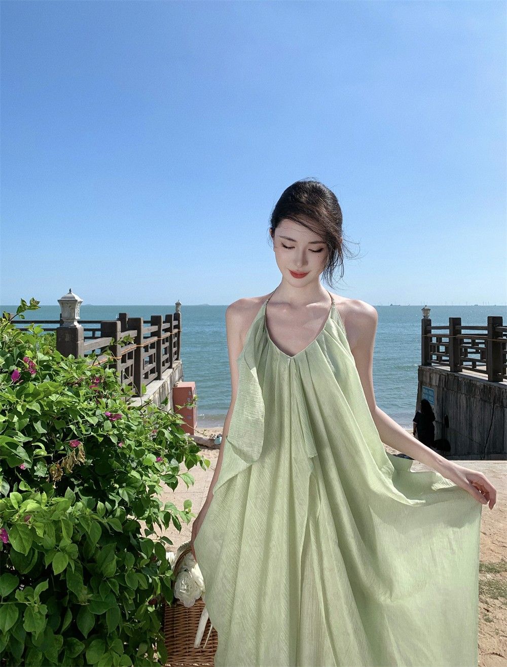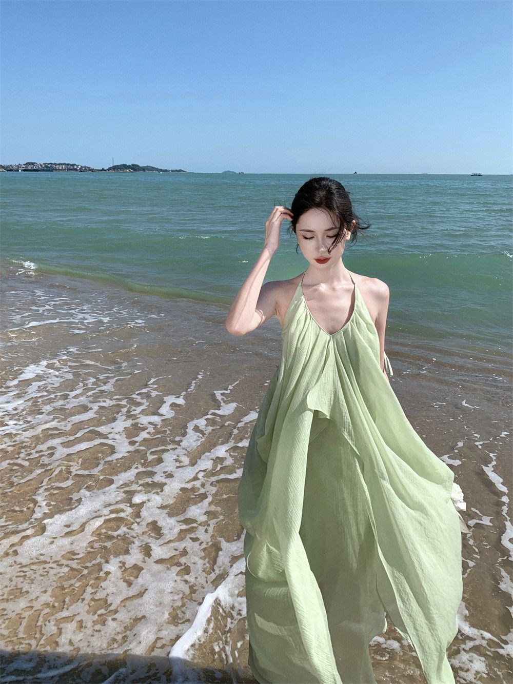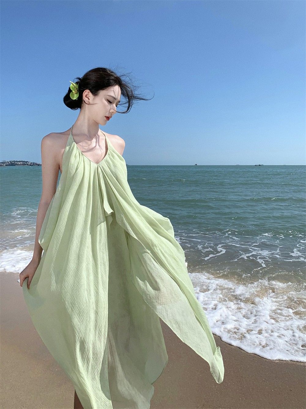 Sırt dekoltesi ve bağcık detayıyla feminen bir şıklık sunan bu elbise, akıcı pliseleriyle her adımda zarafet katar. Belden oturan formu, uzun ve dökümlü eteğiyle özel davetlerden tatil akşamlarına kadar her ortamda dikkat çekici bir stil yaratır. Canlı yeşil tonu ve minimalist tasarımıyla yazın enerjisini taşır.