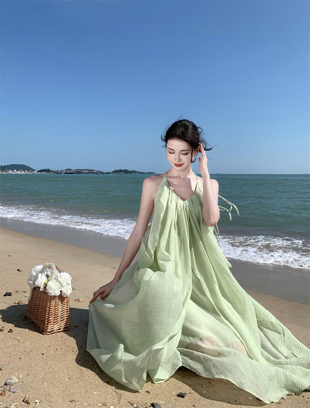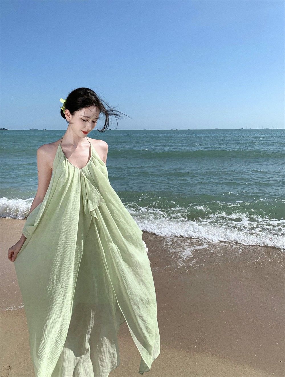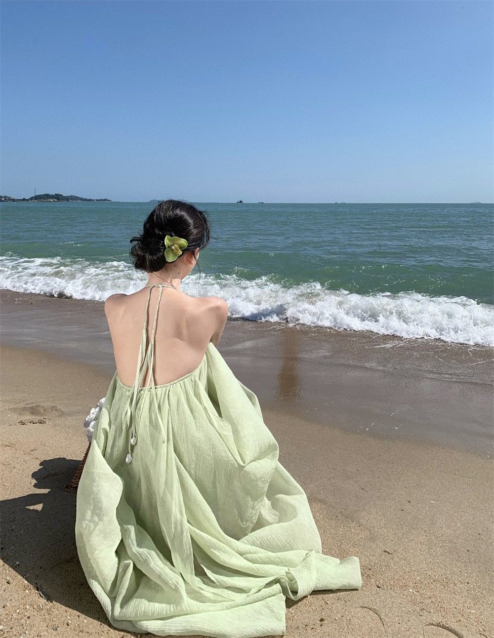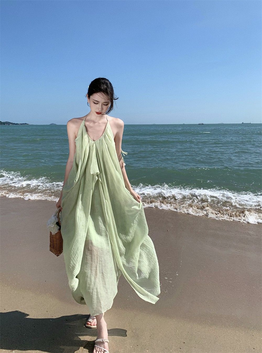 Sırt dekoltesi ve bağcık detayıyla feminen bir şıklık sunan bu elbise, akıcı pliseleriyle her adımda zarafet katar. Belden oturan formu, uzun ve dökümlü eteğiyle özel davetlerden tatil akşamlarına kadar her ortamda dikkat çekici bir stil yaratır. Canlı yeşil tonu ve minimalist tasarımıyla yazın enerjisini taşır.