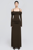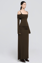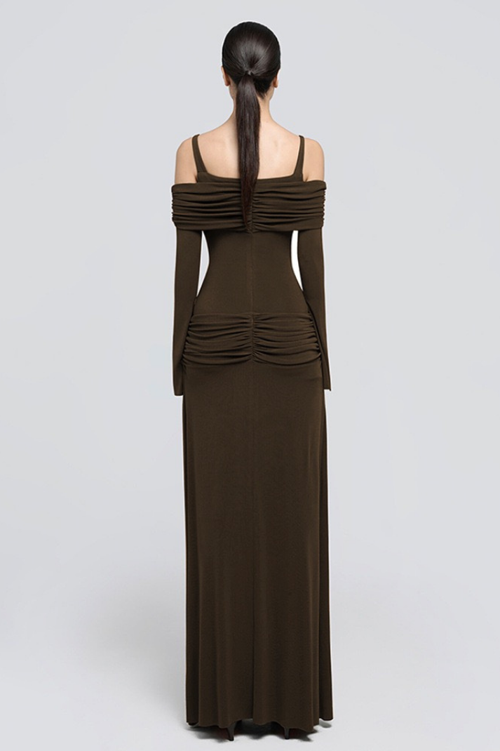 LUMERA | Drapeli Kahverengi Uzun Elbise