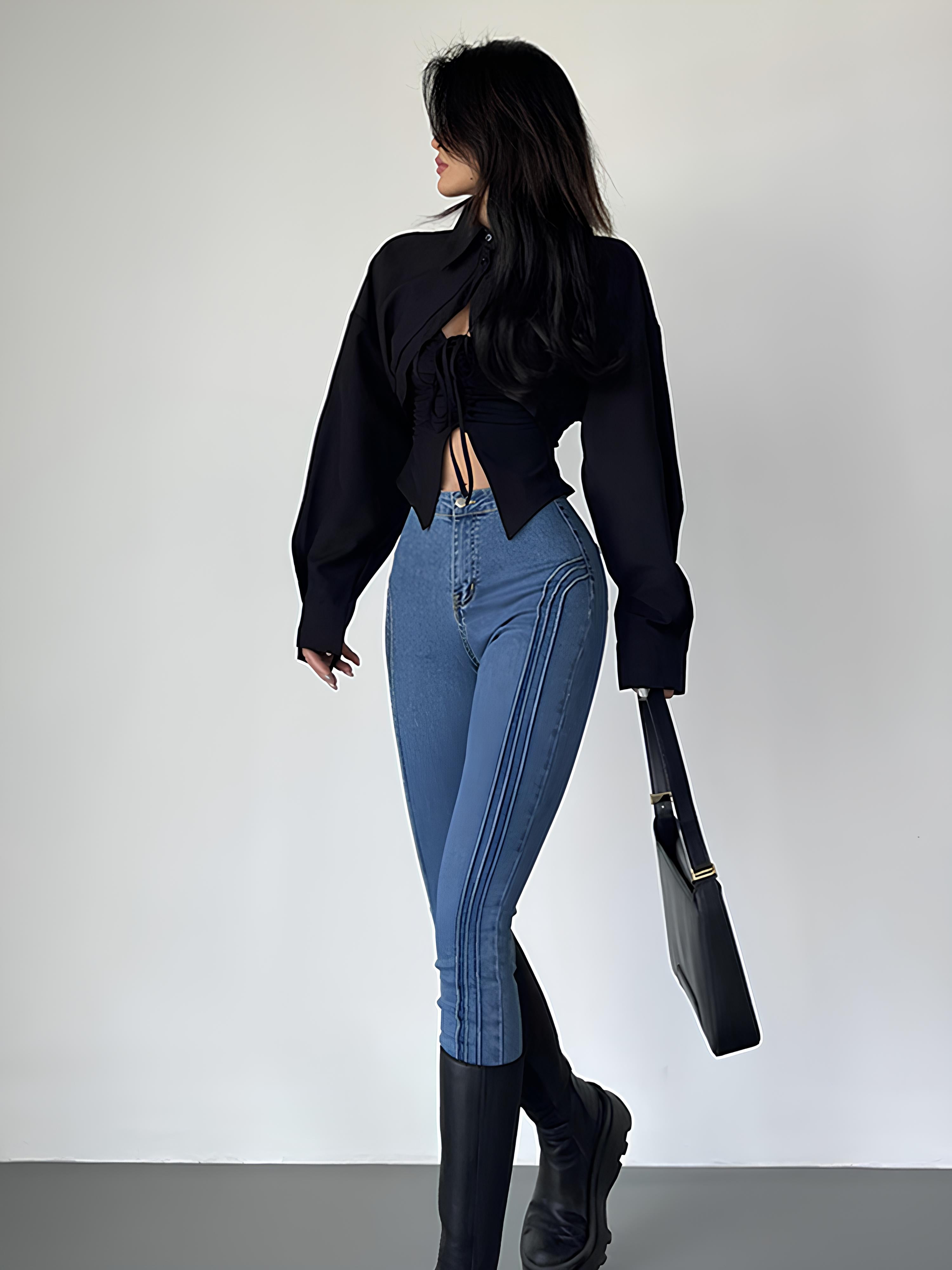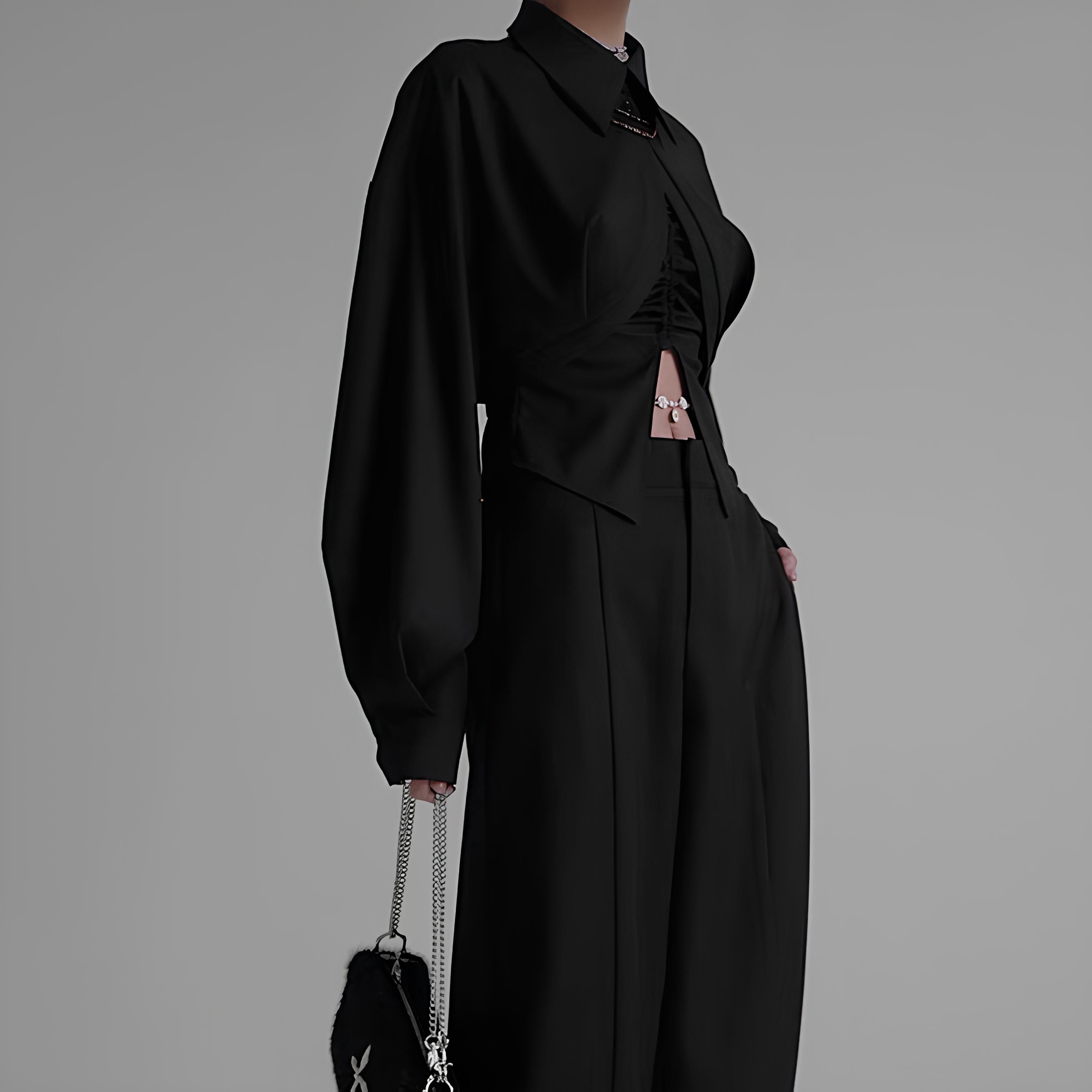Şehirli şıklık ve hafiflik tek bir kombinle buluşuyor. Modern yakalı, tek düğmeli uzun kollu gömlek; minimal tasarımıyla zamansız bir hava katarken, bağcıklı ve büstiyer formundaki kolsuz üst parça ise görünümünüze enerjik ve feminen bir dokunuş ekler. Pamuk ve polyester karışımı kumaşı sayesinde hafif, nefes alabilir ve gün boyu konfor sunar. İster tek parça ister takım halinde kullanarak stilinizi dilediğiniz gibi şekillendirebilirsiniz.