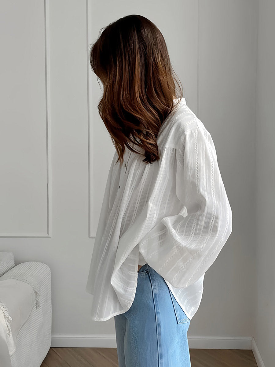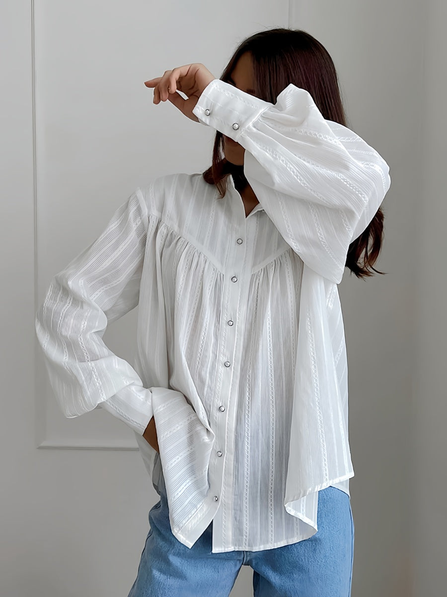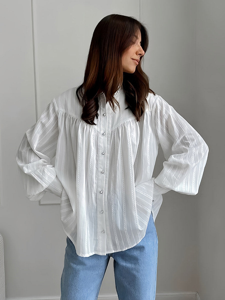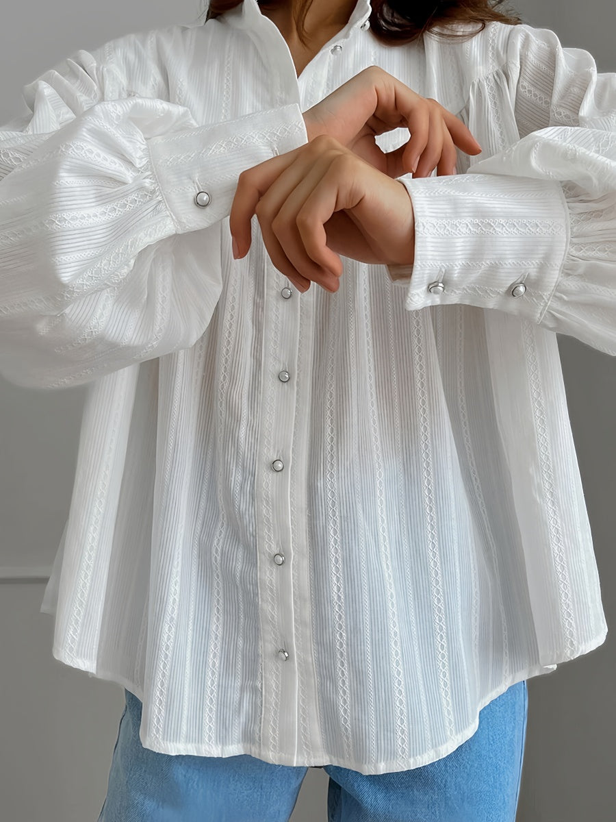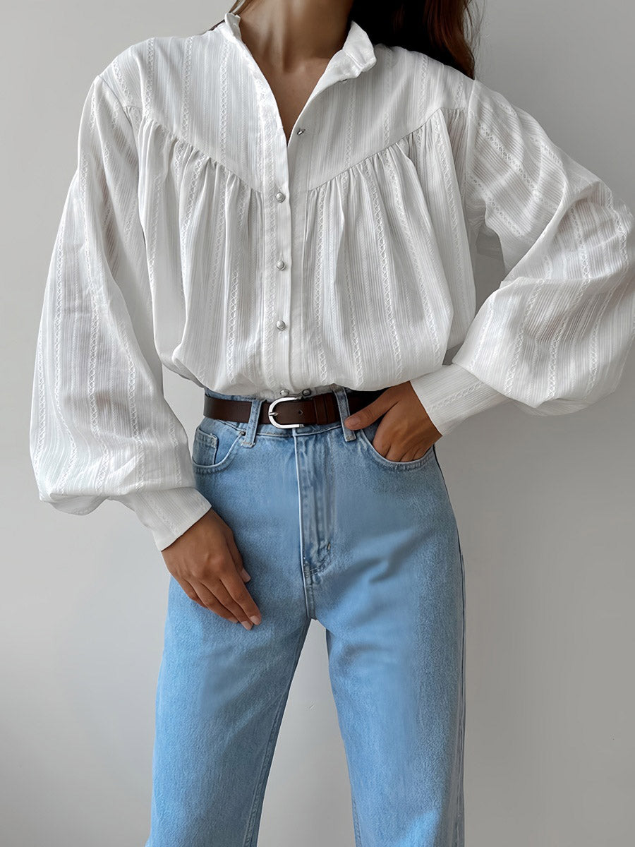 Gardırobunuza şıklık katın! Yumuşak ve nefes alabilen %100 pamuk kumaştan üretilen bu gömlek, zarif fener kol detayları ve klasik düğme kapanışı ile dikkat çekiyor. Gün boyu rahat ve şık hissetmenizi sağlar. Gardırobunuzu bu olmazsa olmaz parça ile yenileyin!