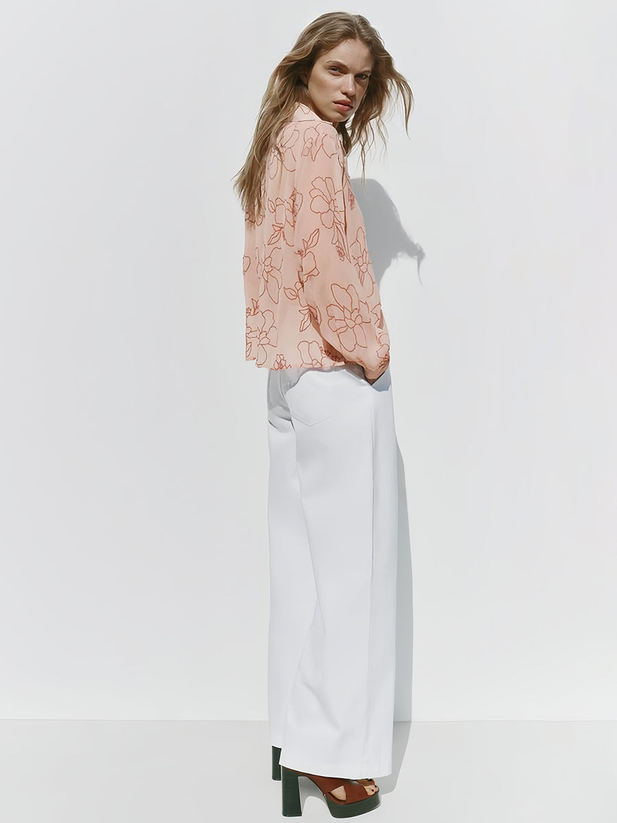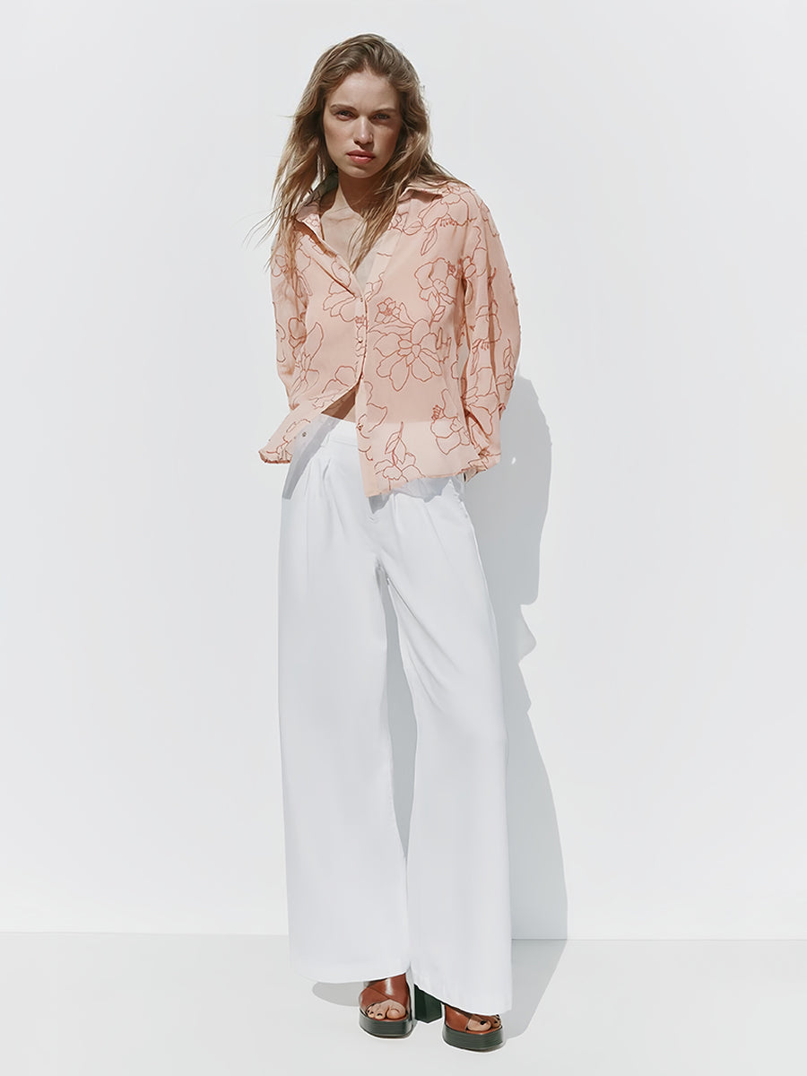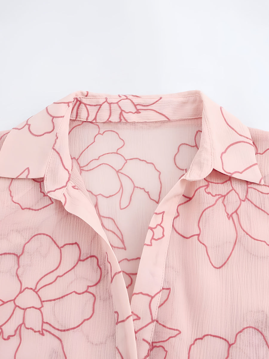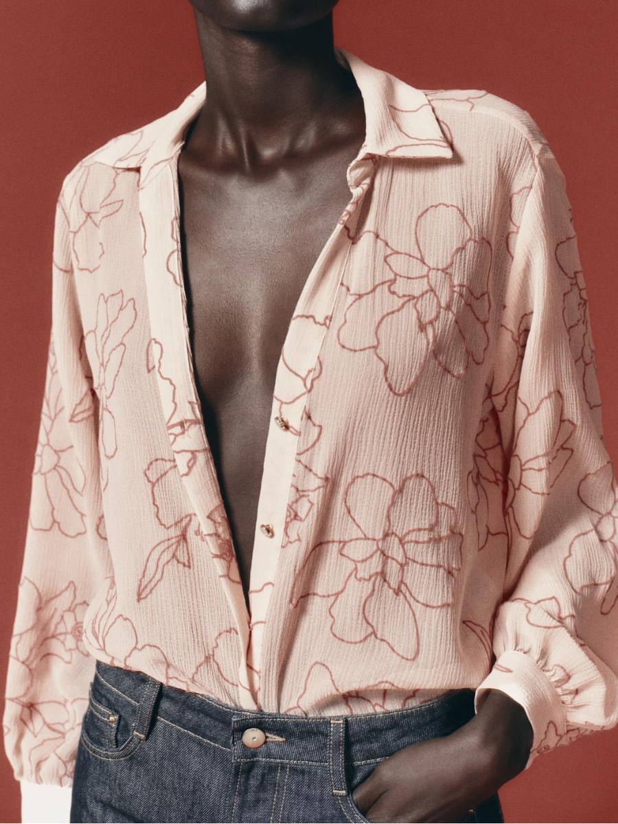 İnci düğme detayları ve enerjik çiçek desenleriyle bu pembe gömlek, her kombine feminen ve neşeli bir dokunuş katar. Hafif kumaşı ve uzun balon kollarıyla tüm mevsimlere uyum sağlar. Oversize kesimiyle konforlu bir şıklık sunar.