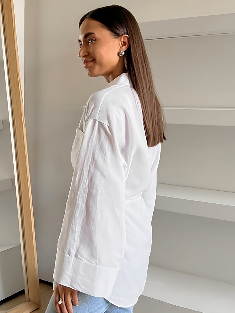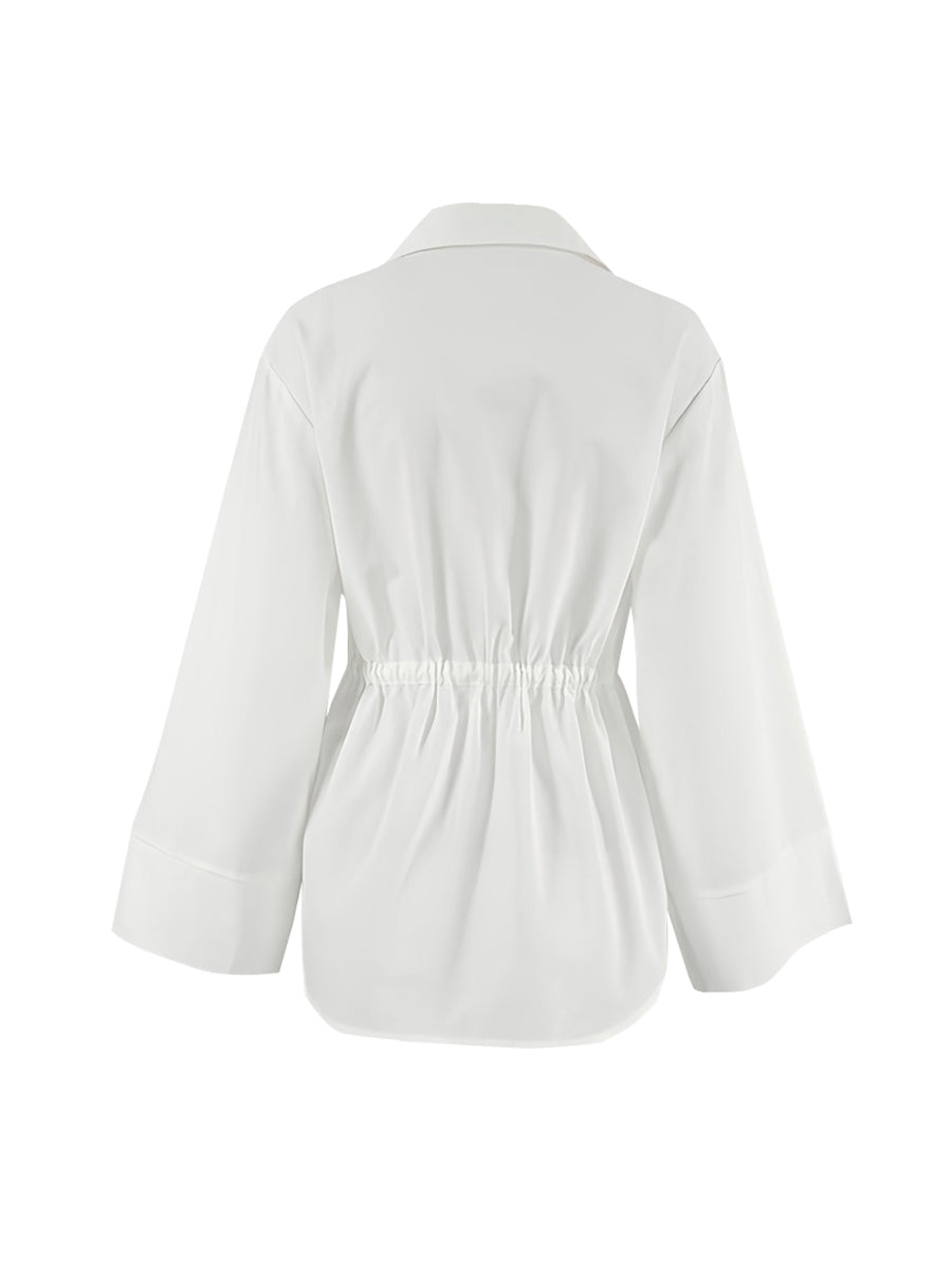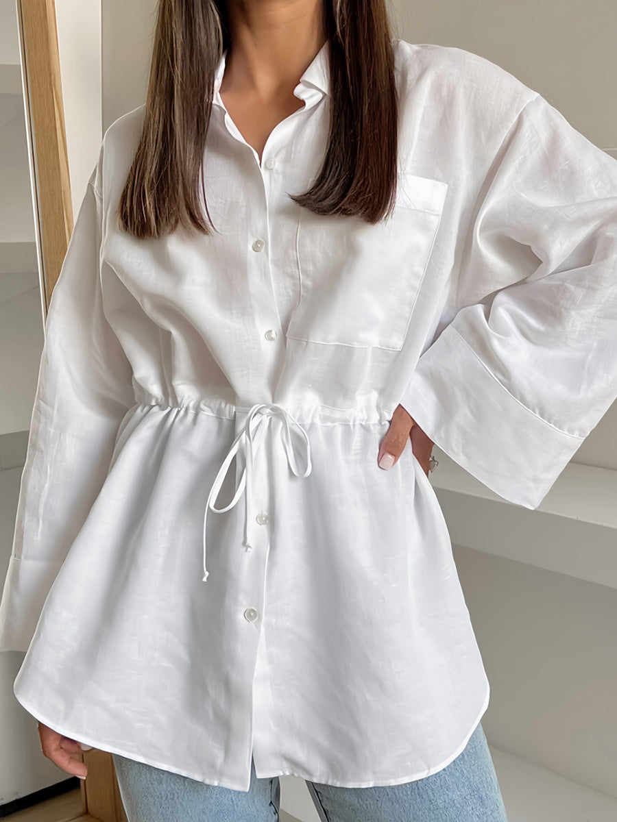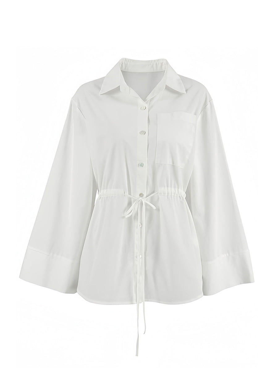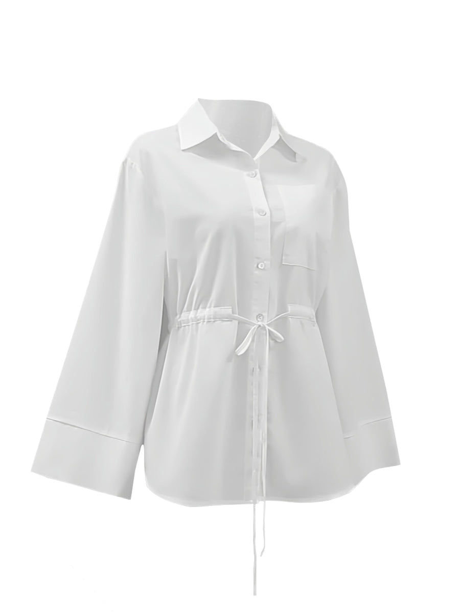 Gardırobunuzu beyaz pamuklu bağlamalı bel uzun kollu gömleğimizle yükseltin. Nefes alabilen pamuk kumaşı ve beldeki bağlama detayıyla hem rahatlığı hem şıklığı bir arada sunan çok yönlü bir parça. Günlük gezilerde ve profesyonel ortamlarda mükemmel.