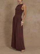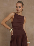 Zarif ve zamansız tasarımıyla öne çıkan Naella Drapeli Maxi Elbise, hem şıklığı hem de konforu bir araya getirir. Kayık yaka, drape detayları ve maxi boyuyla özel davetlerden günlük şıklığa kadar birçok kombin için ideal bir seçimdir. Topuklu ayakkabılar ve zarif aksesuarlarla tamamlandığında kusursuz bir parti elbisesine dönüşür.