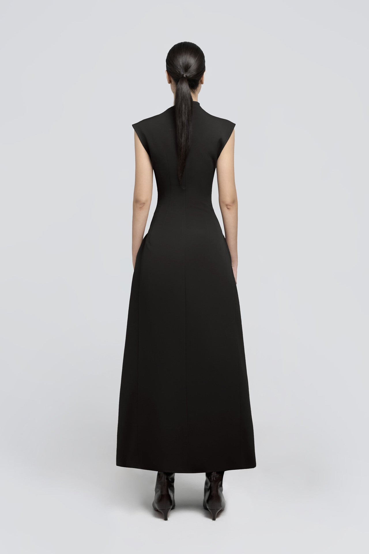 Erona Drapeli Geniş Kesim Midi Elbise – Siyah