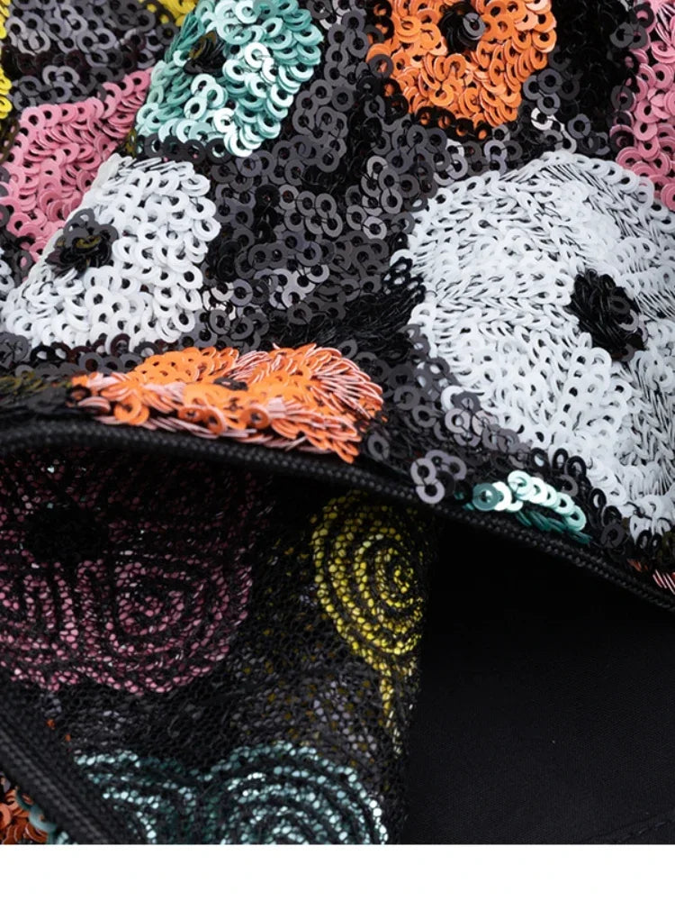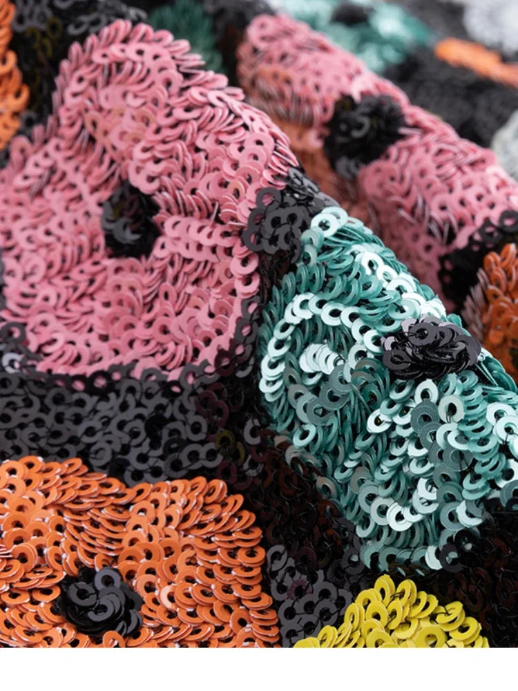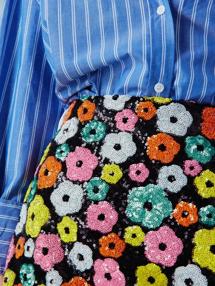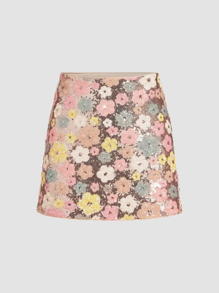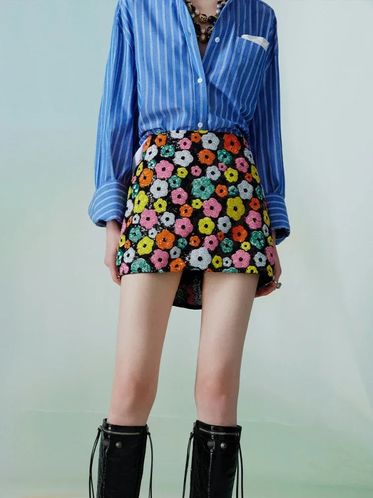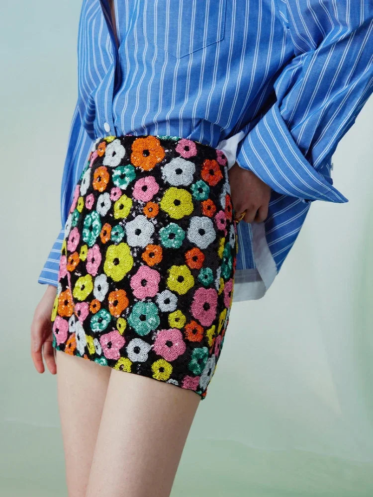 Nakışlı Payetli Yüksek Bel Mini Etek