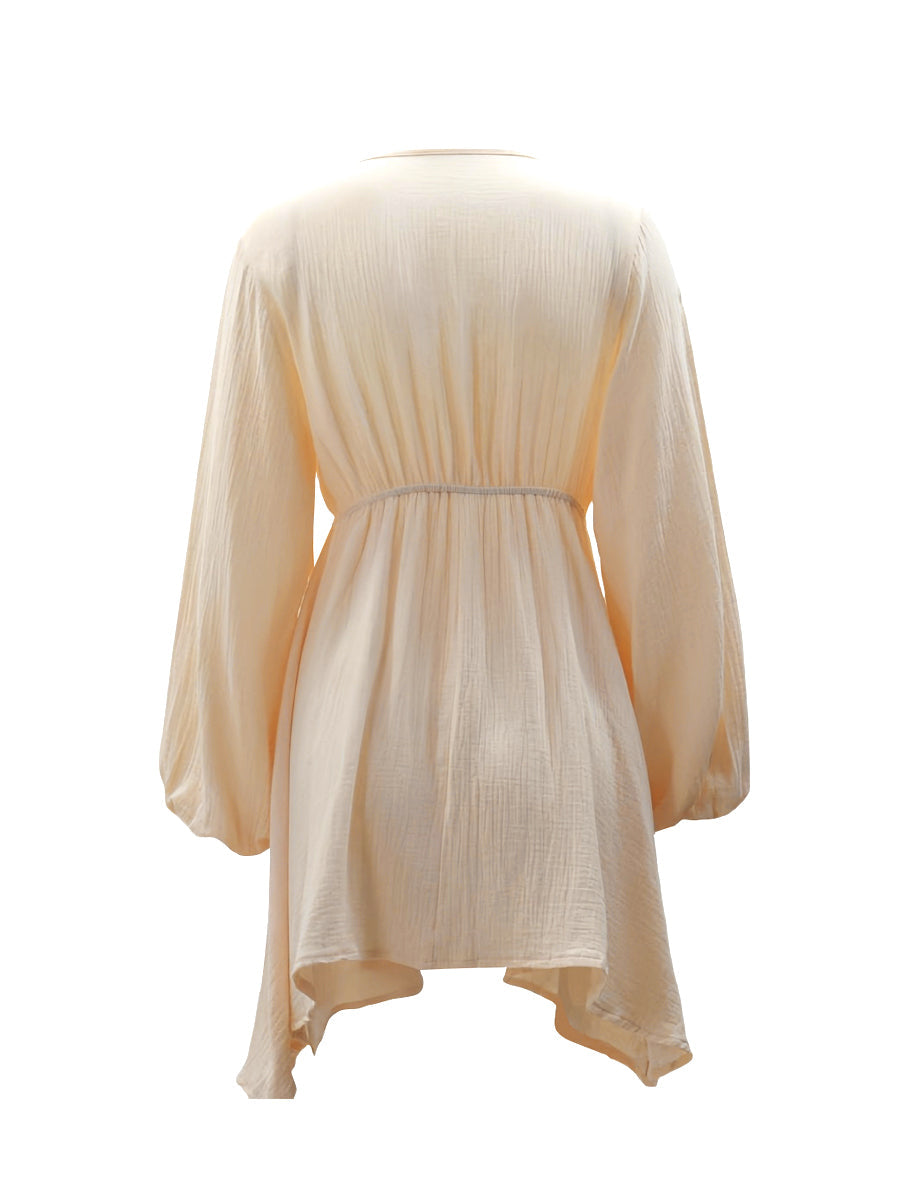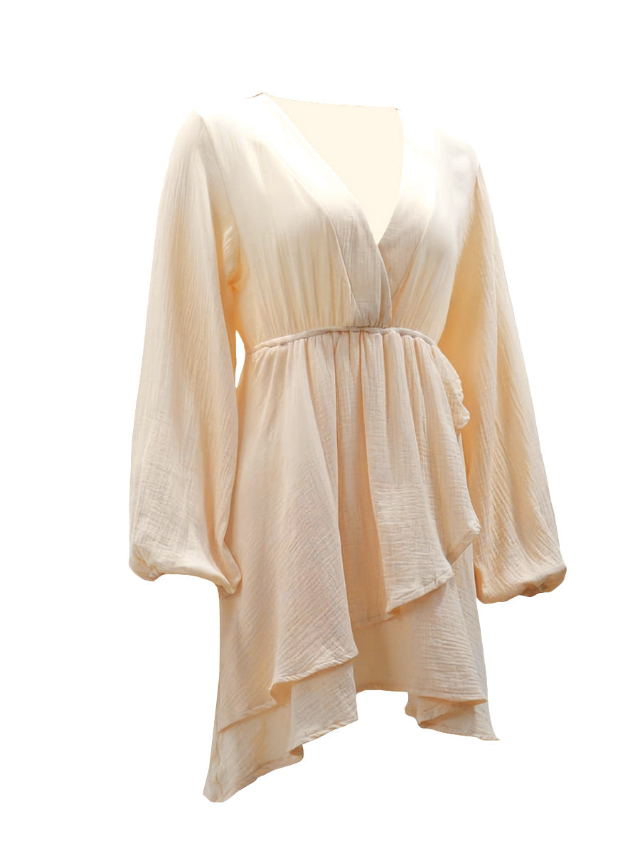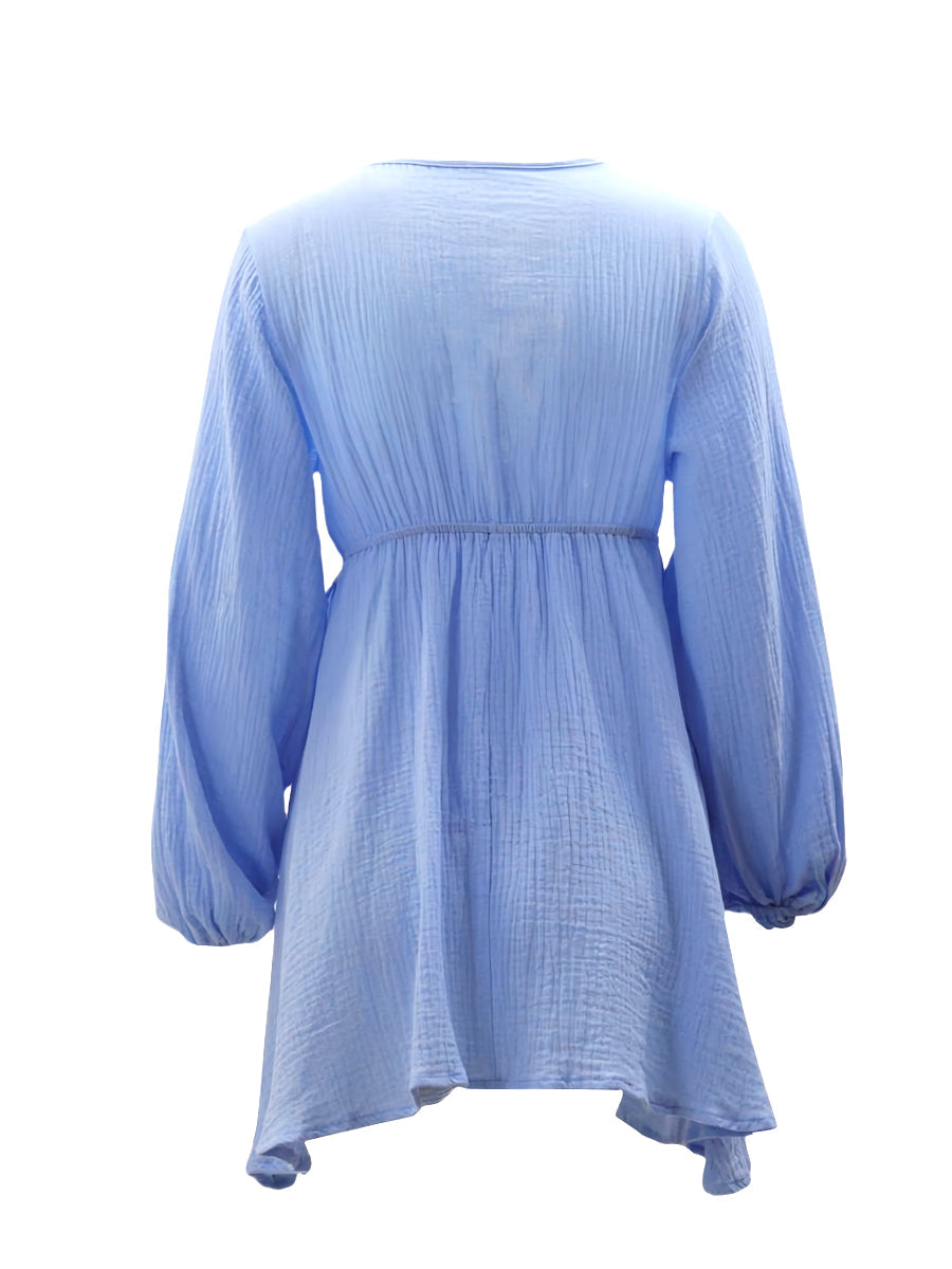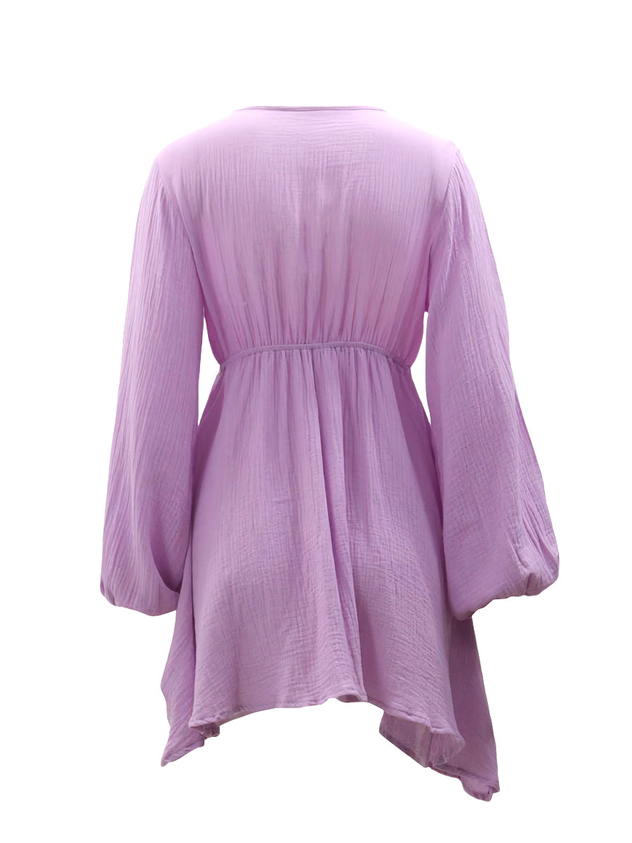 Tarzınızı yükseltin! Benzersiz fener kolları ve V yakasıyla şıklık katan bu elbise, A-line kesimiyle figürünüzü kusursuz şekilde tamamlar. Günlük, rahat veya tatil kombinleriniz için çok yönlü ve zarif bir seçenek. Kemer dahil değildir.