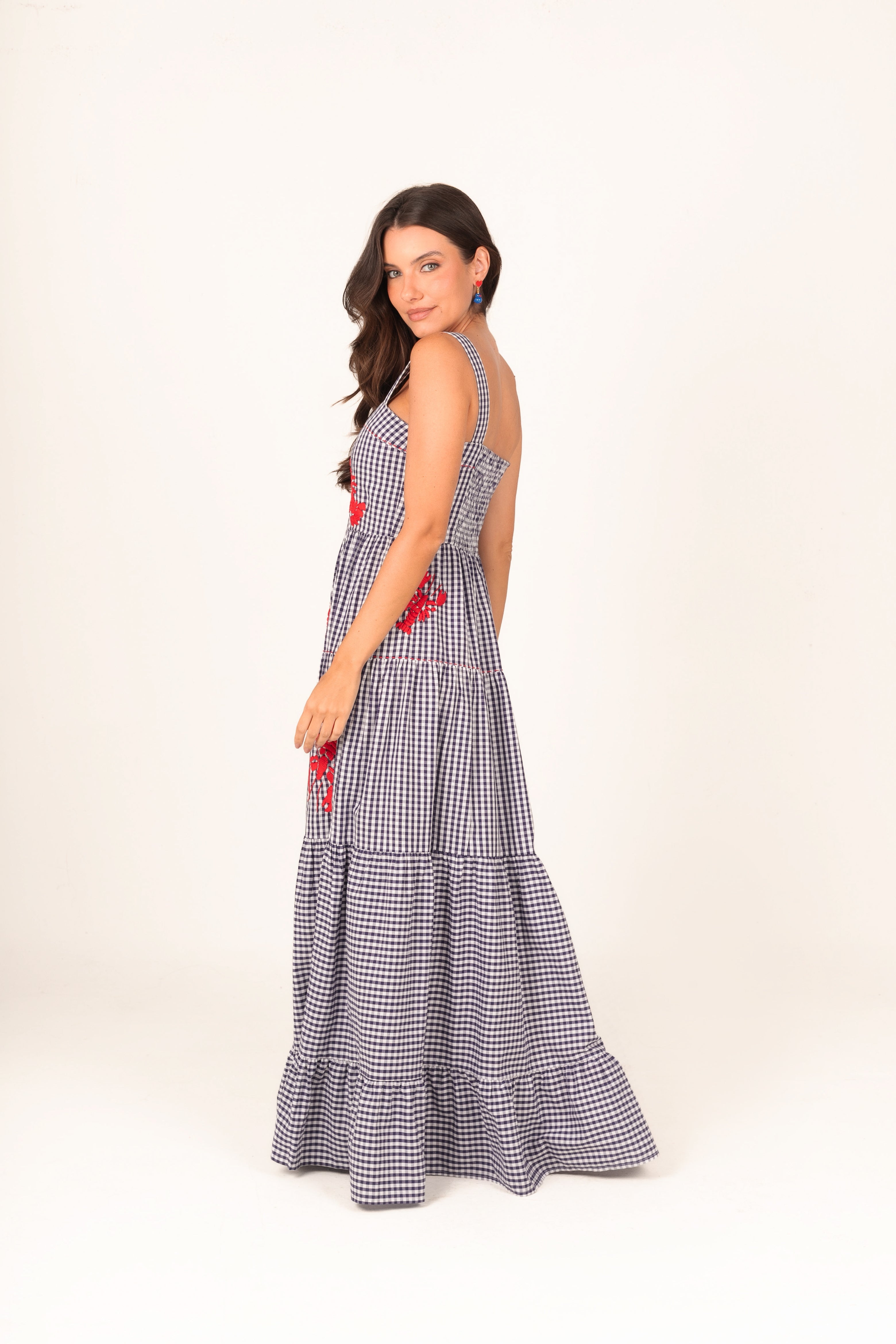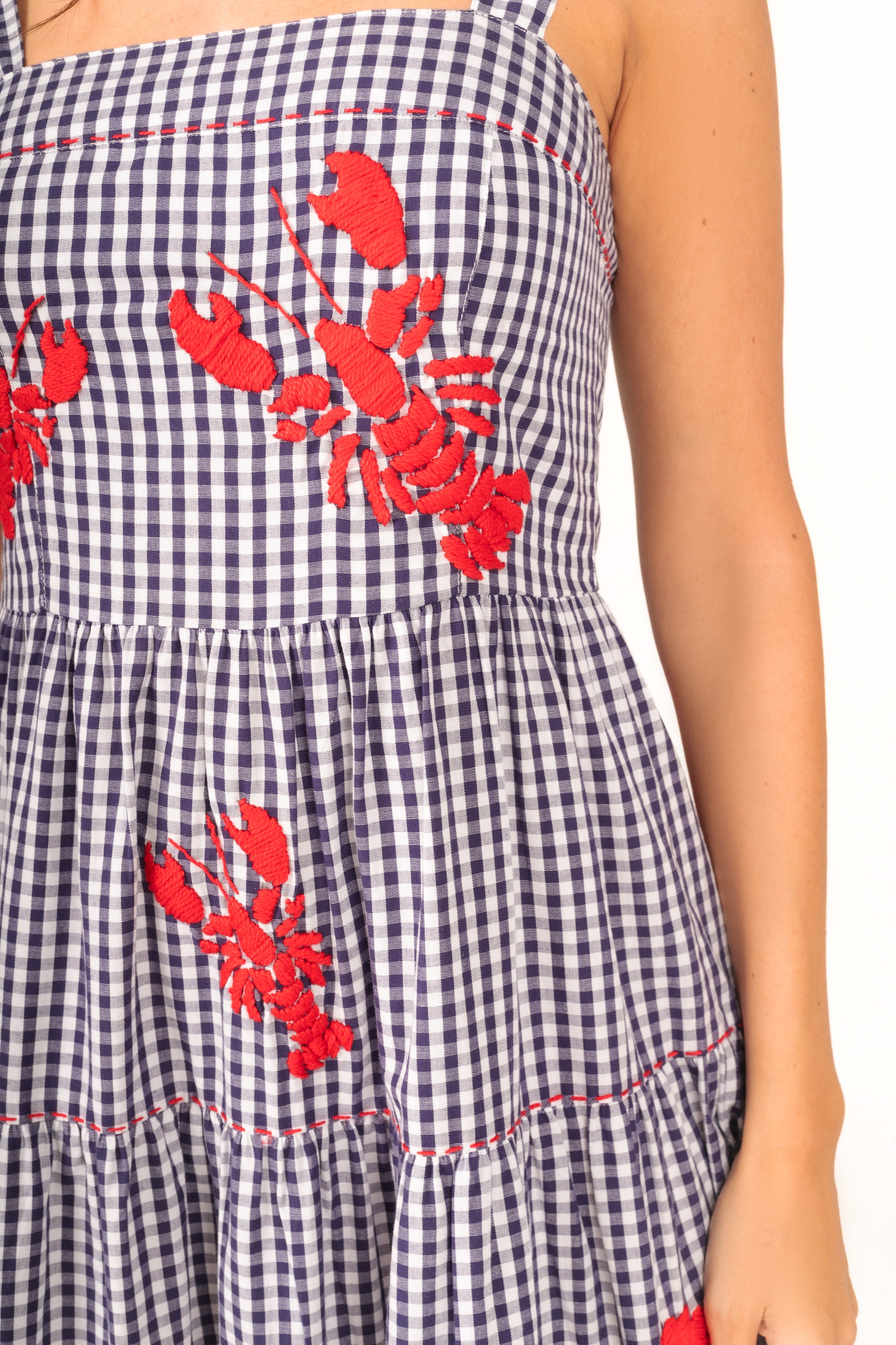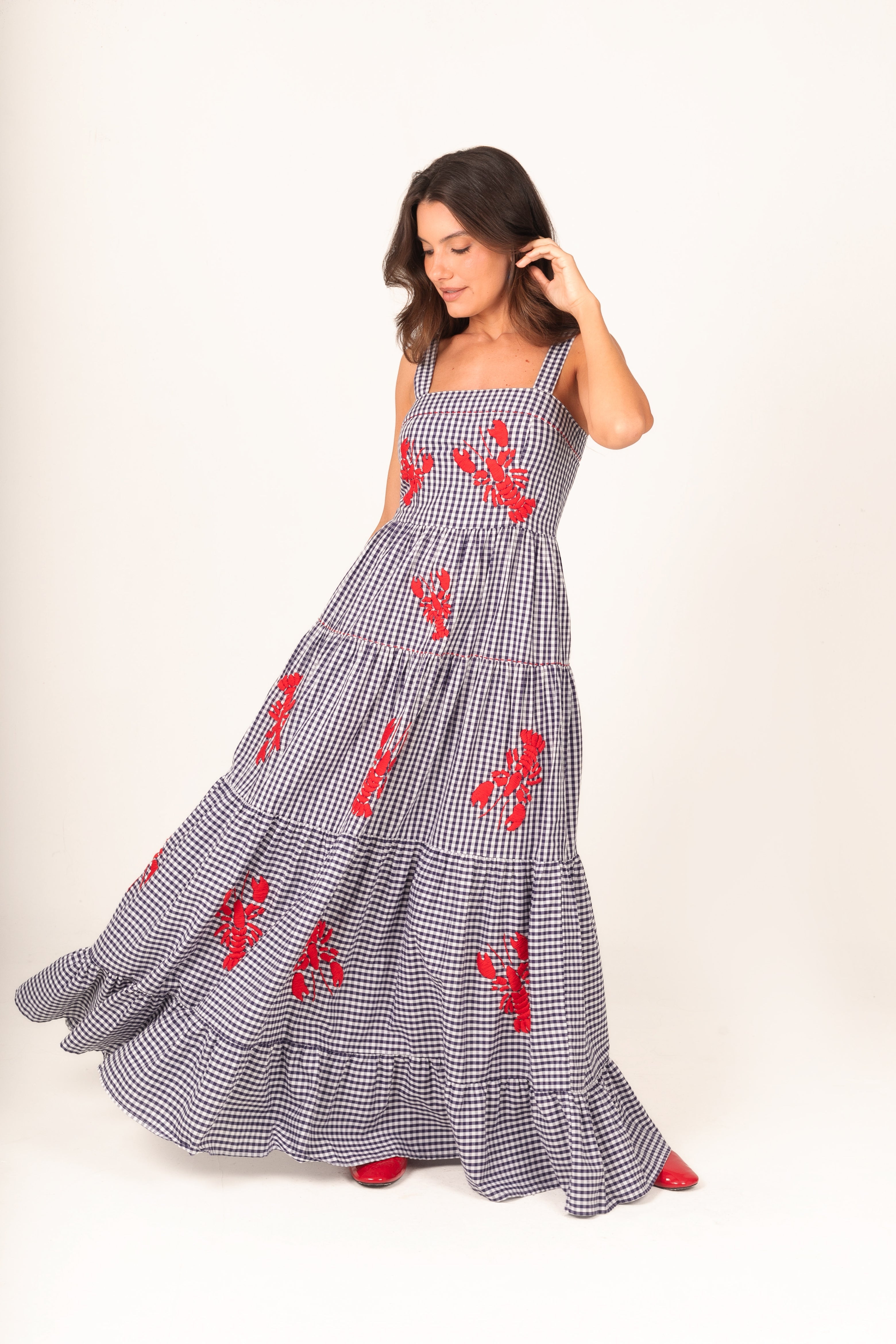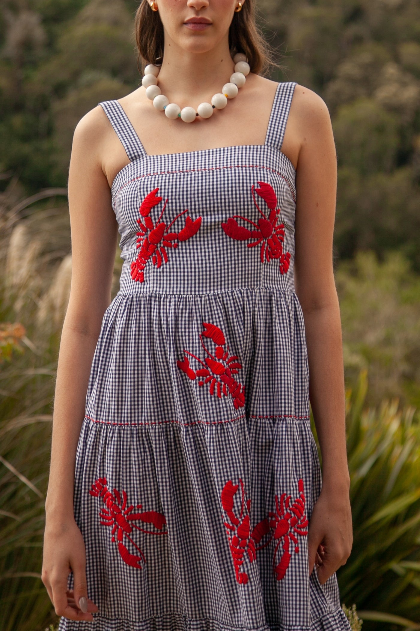 Costa Vichy Elbise – Göz alıcı tasarımıyla güzellik ve konforu bir araya getiren ikonik bir parça. Usta işçilikle elde işlenen lagosta (ıstakoz) motifleri, her biri için 5 saatten fazla süren titiz bir emekle hazırlanır. Bu süreç; dikkat, gözlem ve olağanüstü el becerisinin birleşimiyle ortaya çıkar. Marin şıklığını zarafetle yorumlayan bu elbise, sahil davetlerinden yaz akşamlarına kadar stilinizi öne çıkaracak.