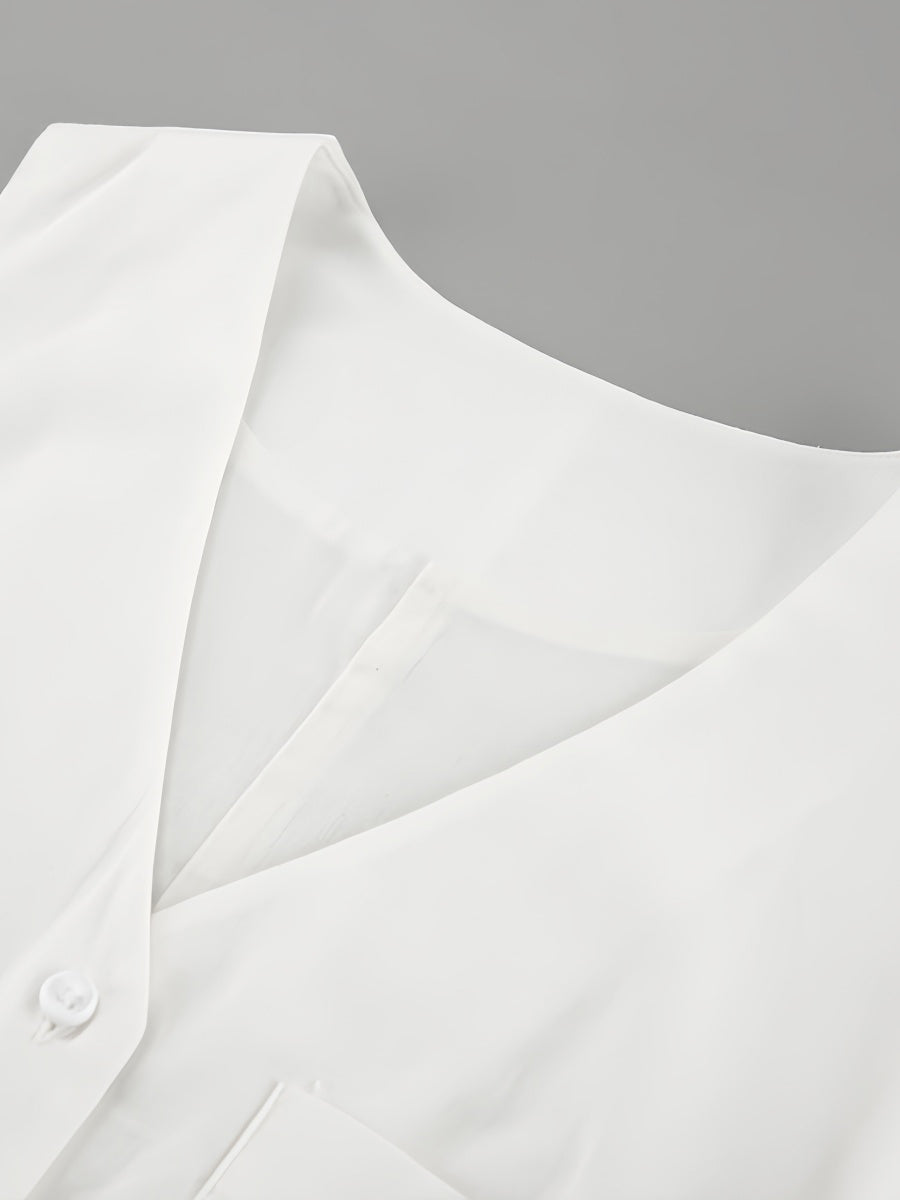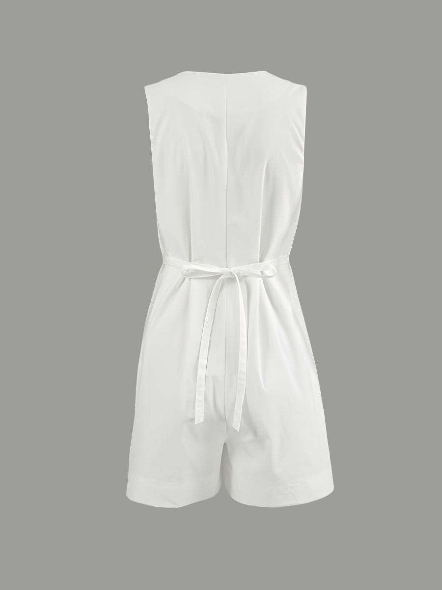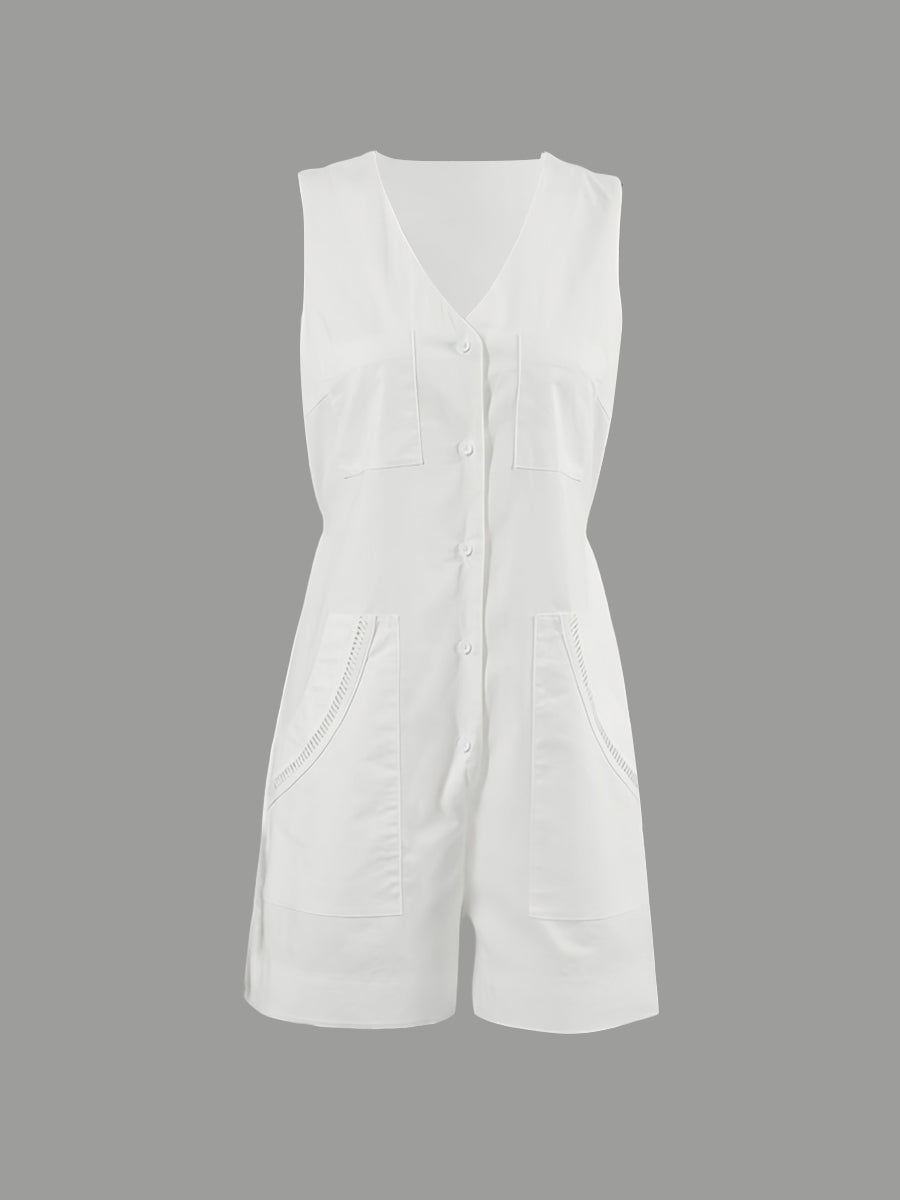 Beyaz Pamuklu V Yaka Kolsuz Tulum ile zahmetsizce şıklığı yakalayın. Nefes alabilen pamuklu kumaşıyla rahatlığı ve tarzı bir araya getiren bu parça, silüetinizi uzatan şık V yakasıyla dikkat çeker. Sıcak havalar için dışarı çıkarken veya gündelik buluşmalarda mükemmeldir.