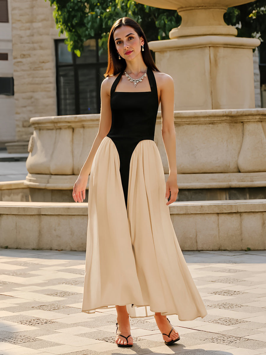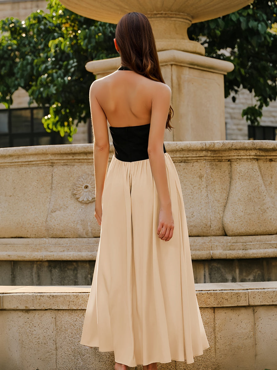 Dikkat çeken kolsuz halter midi elbisemizle tarzınızı ortaya koyun. Bu çarpıcı tasarım, omuzlarınızı vurgulayan şık halter yakasıyla cesur renk kontrastlarını bir araya getiriyor. Gardırobunuzda mutlaka bulunması gereken bu elbise ile her ortamda göz kamaştırın.