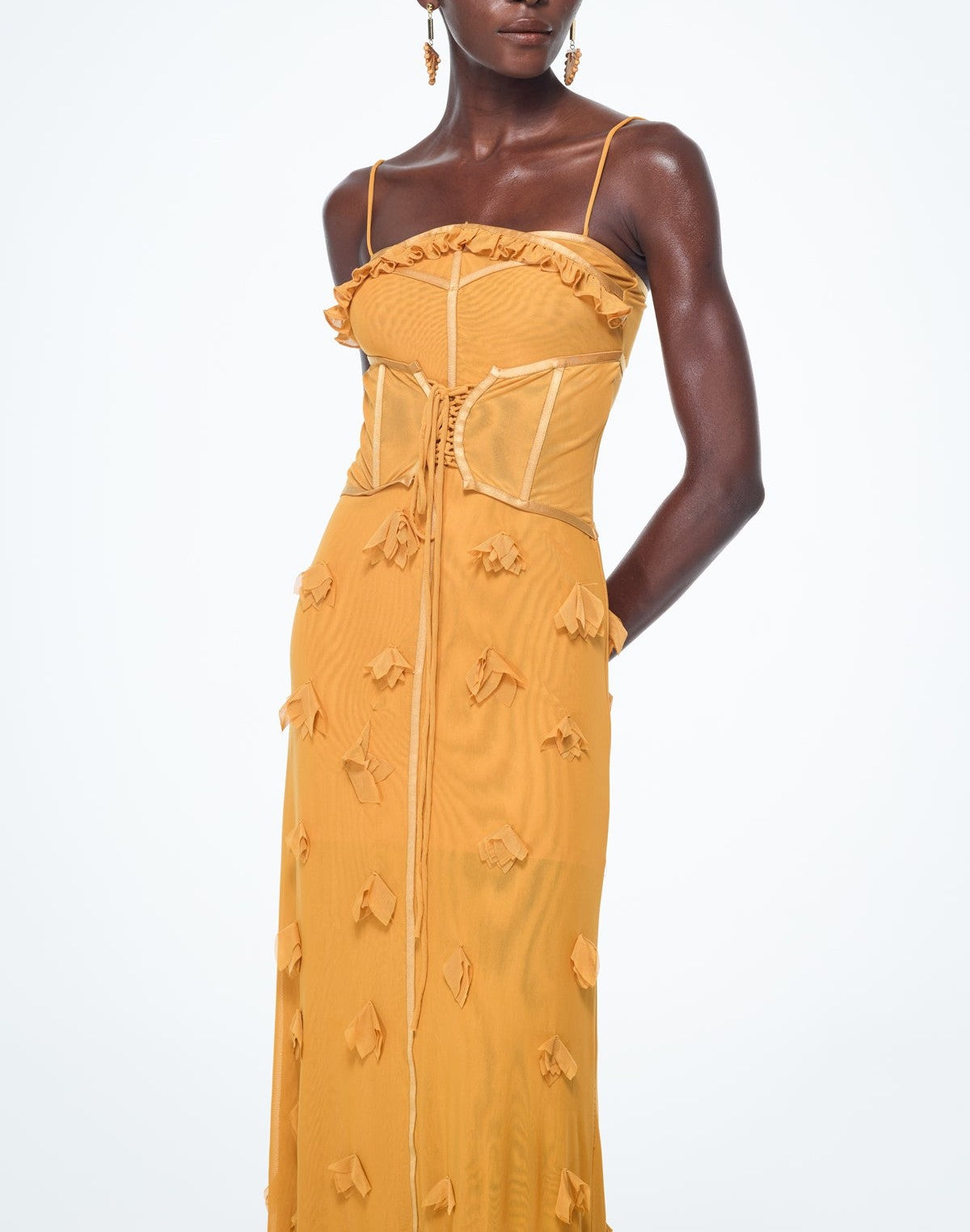 Caela Çiçek Desenli Korseli Maxi Elbise