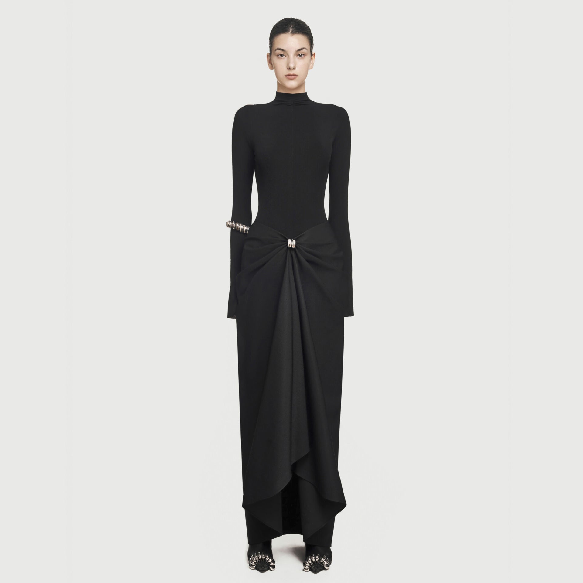 Fayra, patchwork tasarımıyla sanatsal bir sofistike dokunuş sunarken, büzgülü detayları vücut hatlarınızı nazikçe sararak sizi kusursuz bir siluete kavuşturur. Lüks ve zarafeti bir arada yaşamak isteyenler için özel olarak tasarlanan bu elbise, gardırobunuzun gözdesi olmaya aday.