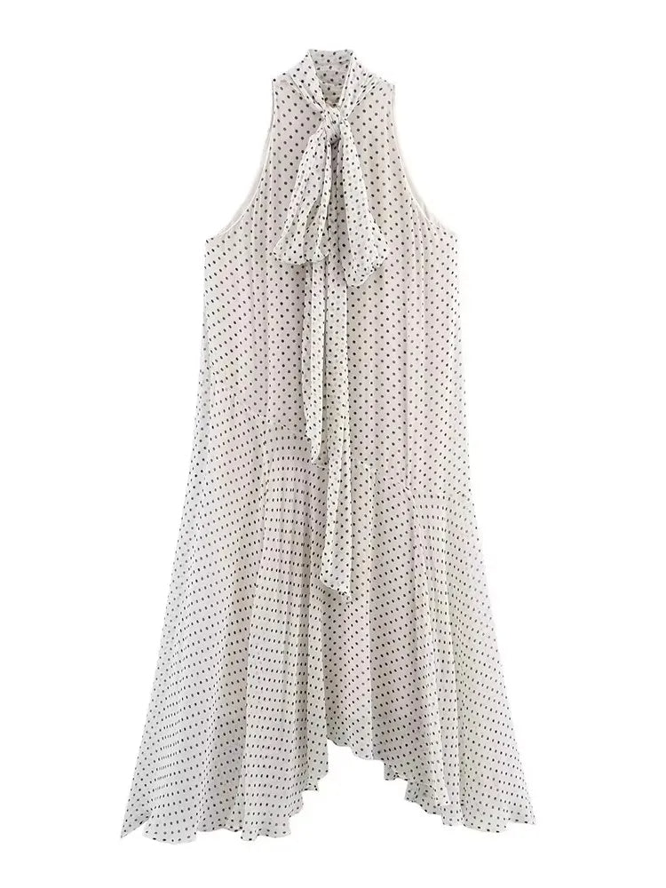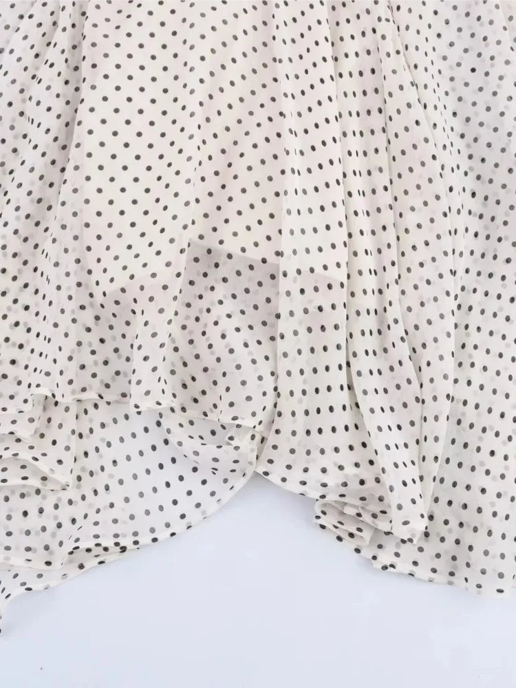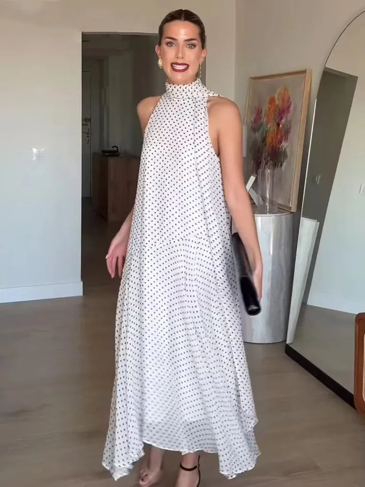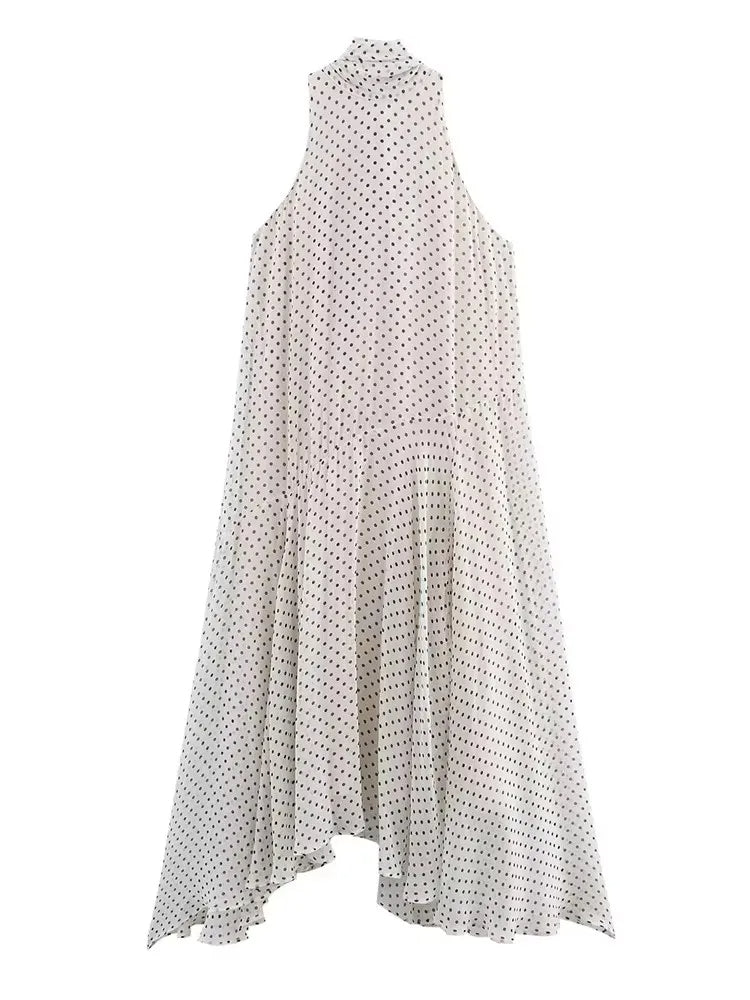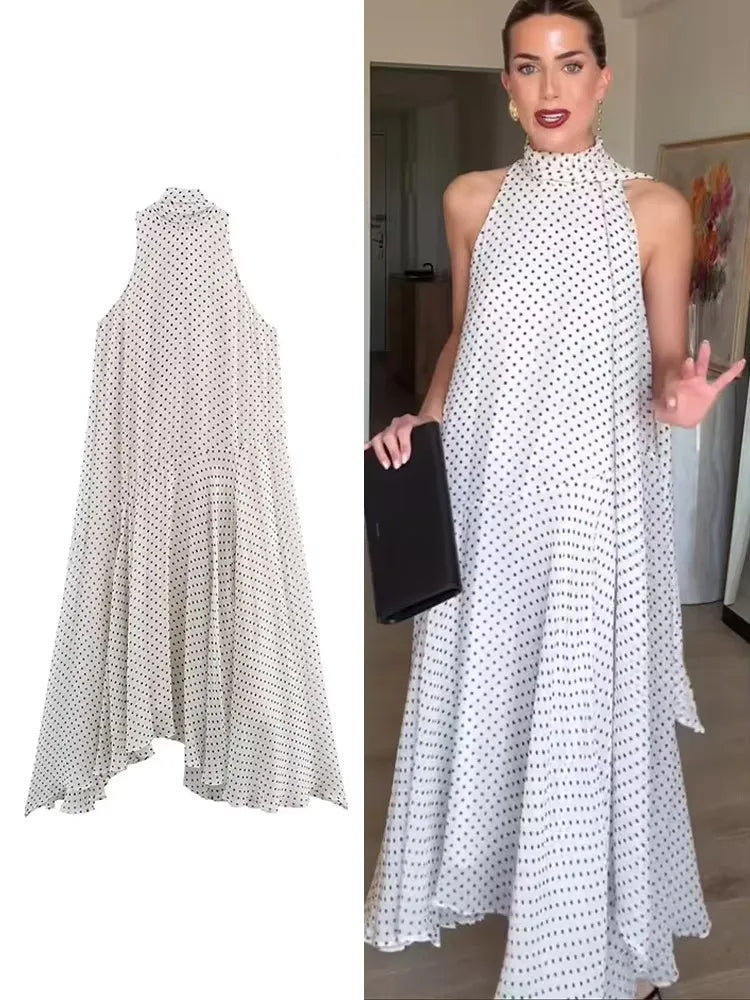 Zamansız şıklığı modern bir dokunuşla yeniden keşfedin.  Puantiyeli Maxi Elbise, zarif puantiye deseniyle klasik bir görünüm sunarken, asimetrik etek ucu çağdaş bir hava katıyor. Hafif ve yumuşak dokulu kumaşı sayesinde gün boyu konforlu bir şıklık sağlar. Akşam yemeklerinden bahçe partilerine kadar her özel an için mükemmel bir tercih.