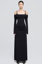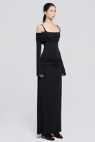 LUMERA | Drapeli Siyah Uzun Elbise