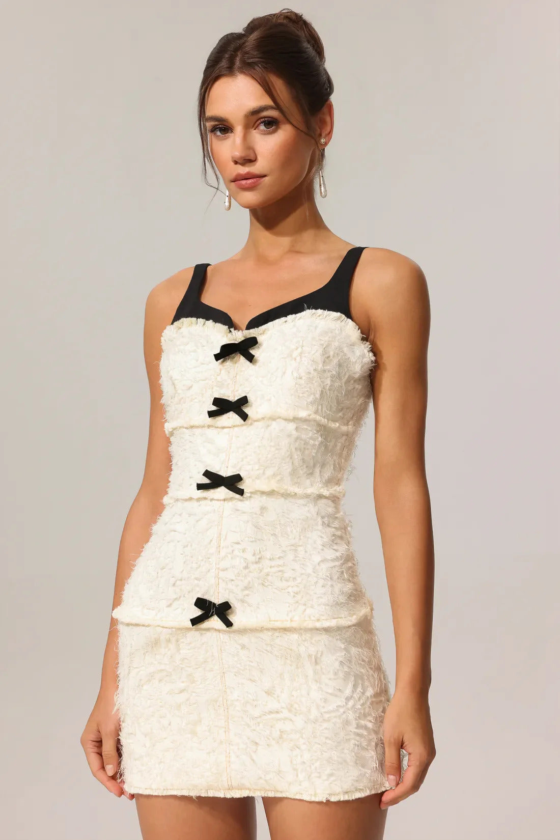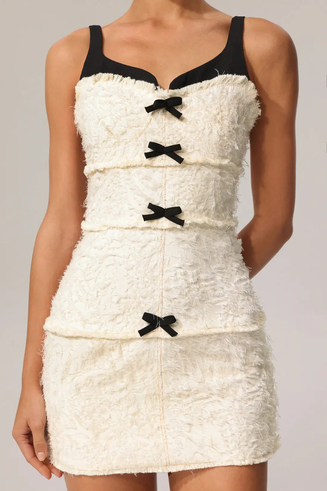 Sanya Fiyonk Detaylı Mini Elbise, lüks ve sofistike tasarımın eşsiz bir örneği. İnce jakarlı kumaşı ve zarif fiyonk detaylarıyla stilinize zarafet katıyor. Gardırobunuzun vazgeçilmezi olacak bu şık elbise, her ortamda dikkat çekmenizi sağlayacak.