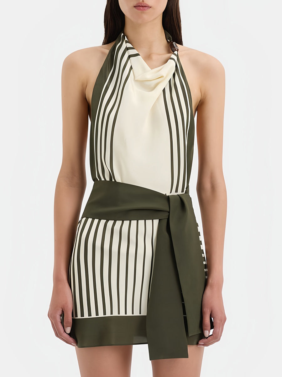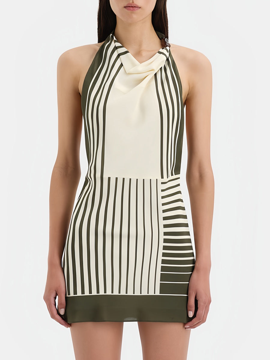 • Tasarım: Düzensiz Çizgili Desen, Halter Yaka, Açık Sırt