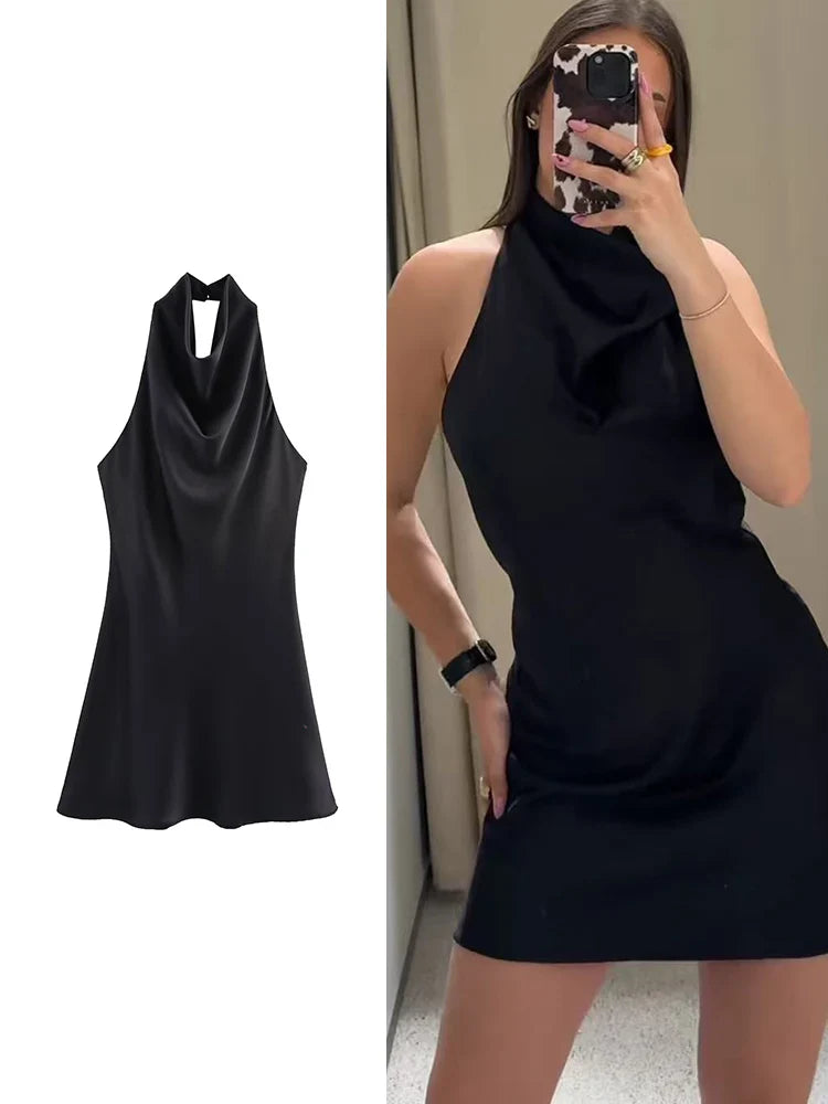 ELVINA | Saten Sırt Dekolteli Mini Elbise