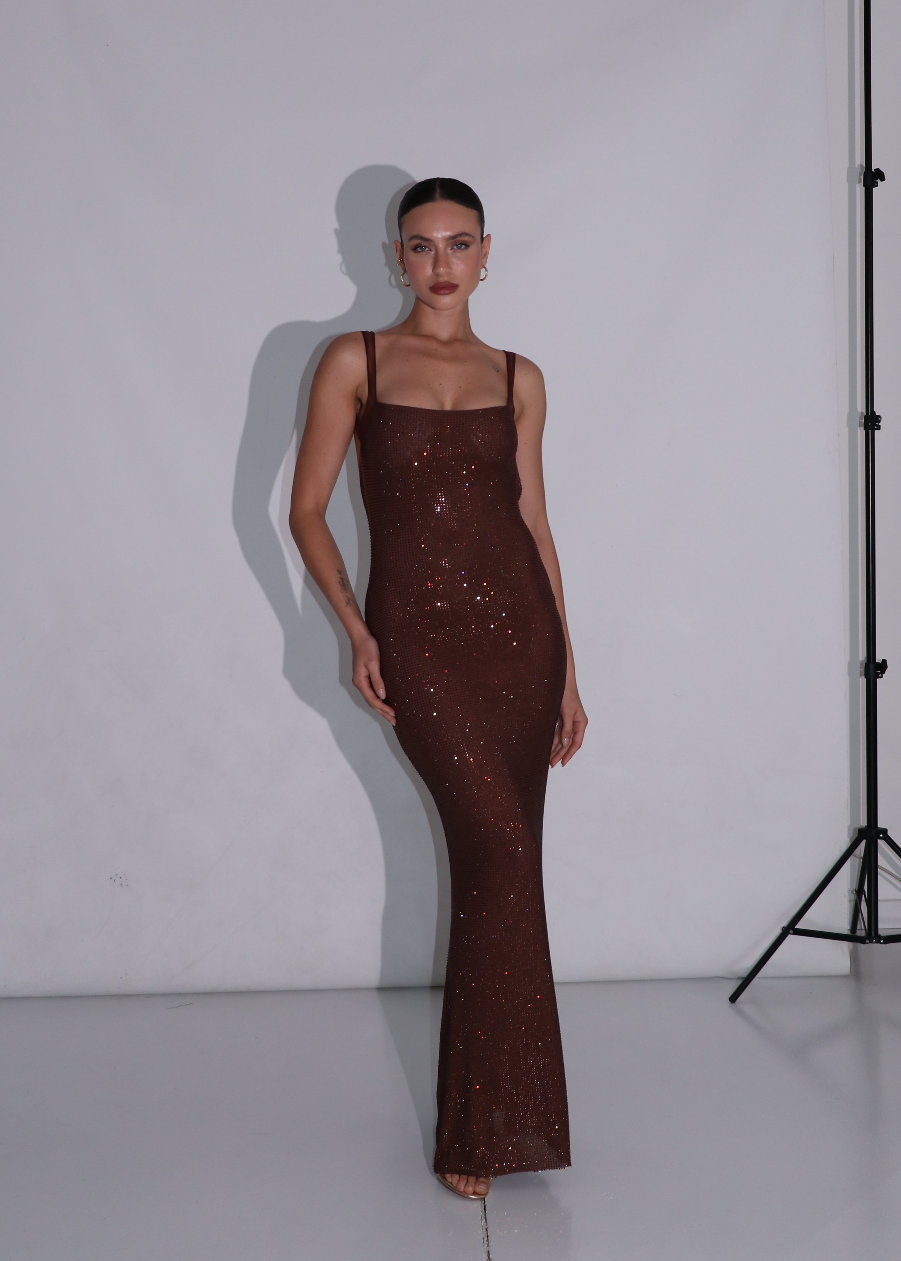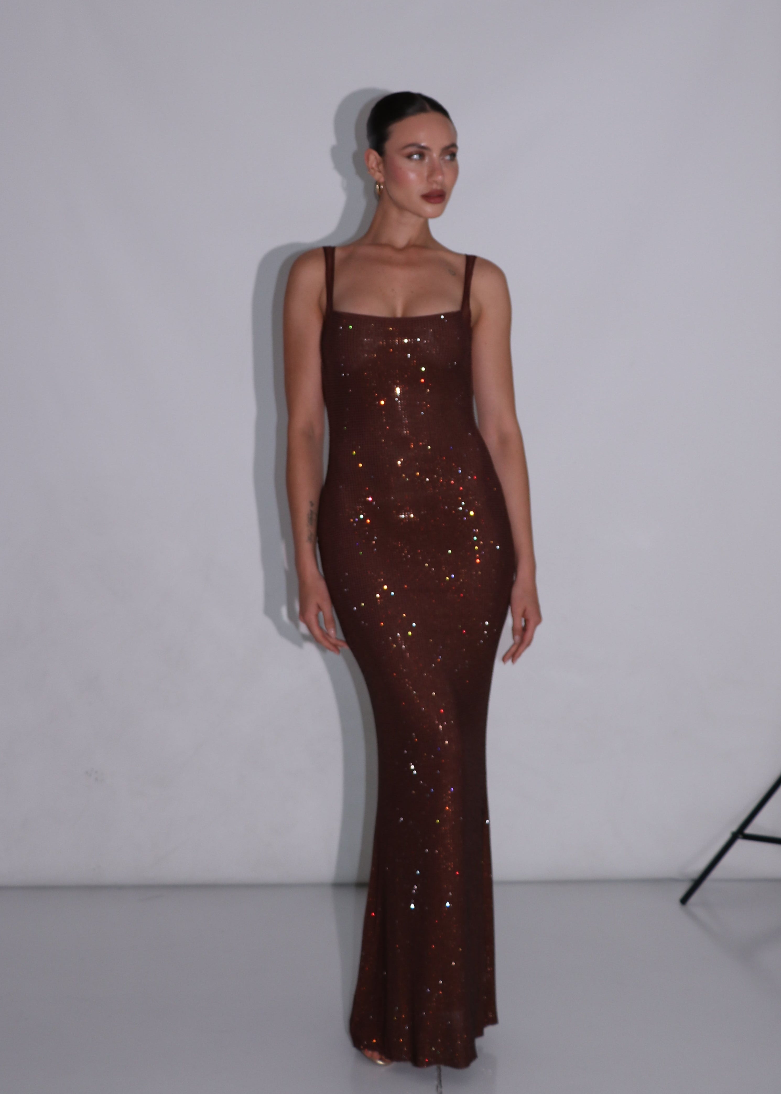 Valenora | Işıltılı Uzun Elbise - Kahverengi
