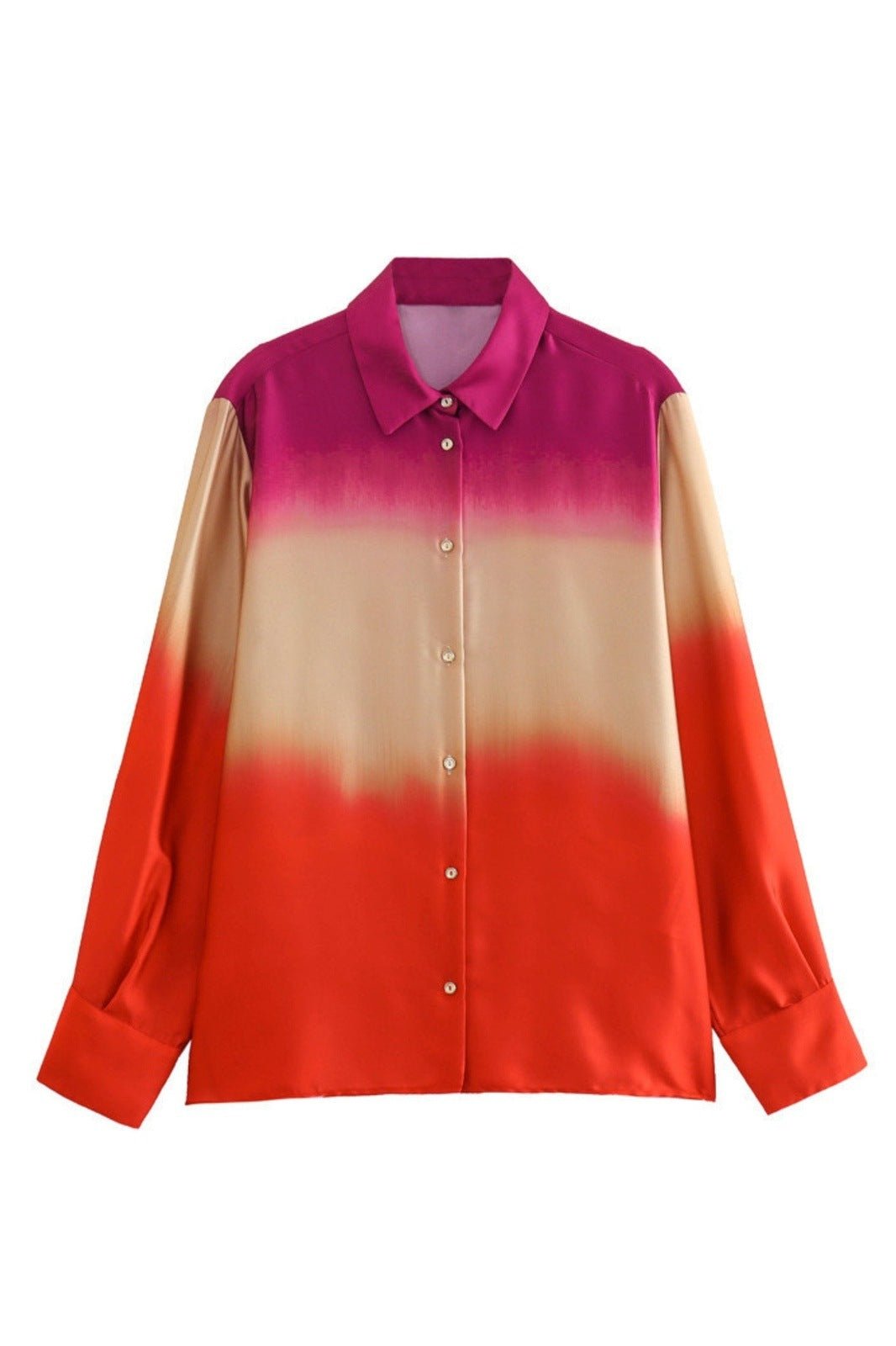Degrade Baskılı Saten Takım, gün batımını andıran sıcak tonları ve zarif saten dokusuyla sofistike bir stil sunar. Gradyan desenli, düğmeli gömlek rahat kesimiyle konfor sağlarken, düz paça pantolonu zarif bir siluet oluşturur.