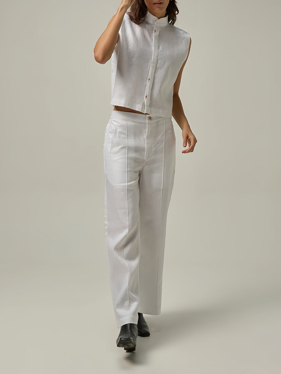 Gardırobunuzda sofistike ve konforu bir arada sunan Bu Dik Yaka Kolsuz Düz Pantolon Takımı ile tanışın. Şık dik yaka ve kolsuz tasarımıyla modern ve zarif bir siluet sunar.