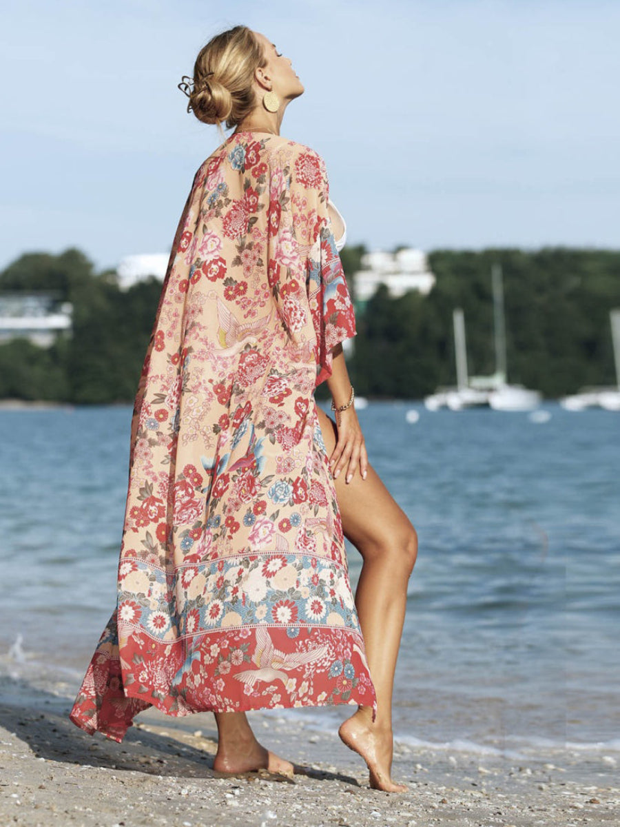 Hafif ve dökümlü tasarımıyla bohem ruhunu yansıtan bu uzun kollu elbise, çiçek desenleriyle tatil stilinize zarif bir dokunuş katıyor. Mayo üzerinde de şıklık ve rahatlık arayanlar için ideal.