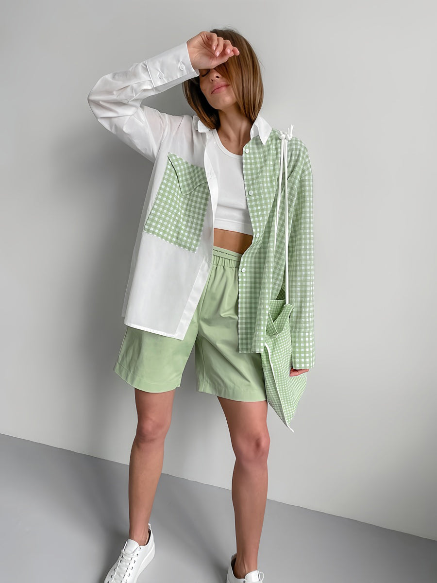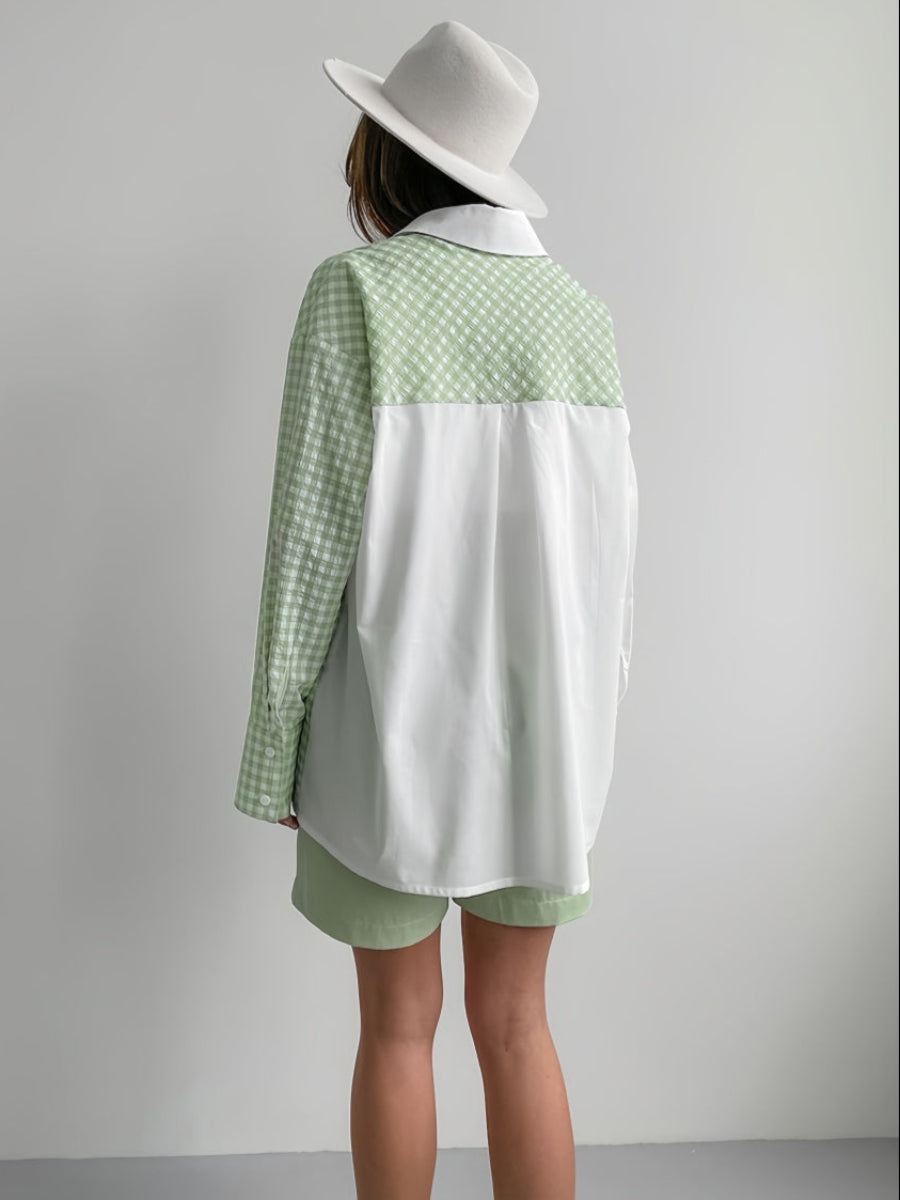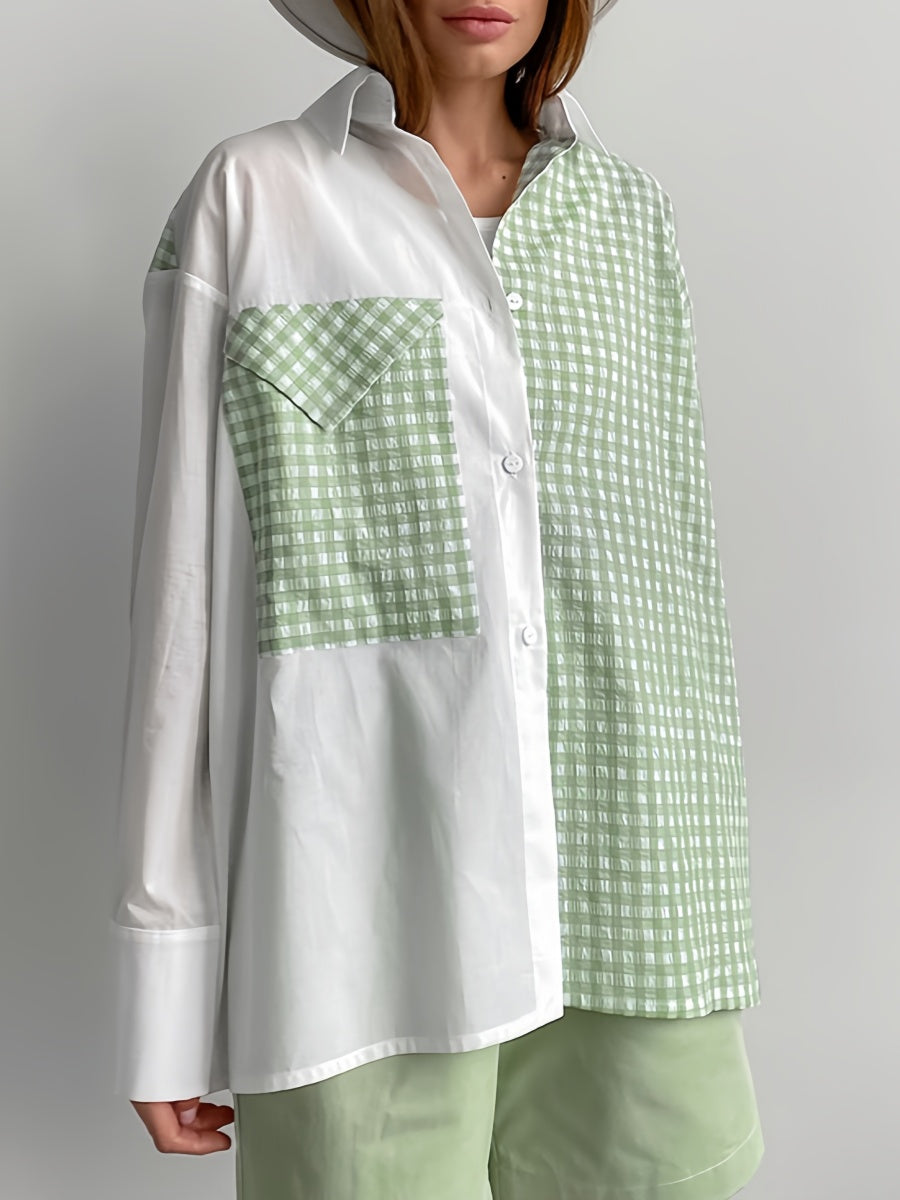 Günlük kullanıma uygun, benzersiz patchwork tasarımı ve klasik ekose desenleriyle öne çıkan bu uzun kollu gömlek, rahat oversize kesimiyle stil ve konforu bir arada sunar. Günlük, şık ve ofis kombinlerine kolayca uyum sağlar.
