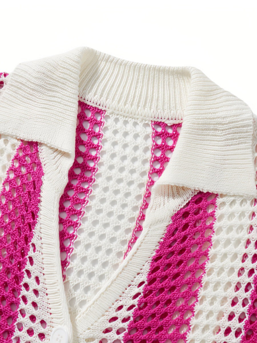 Detaylar: Kroşe İşleme, Çizgili Desen, Düğmeli