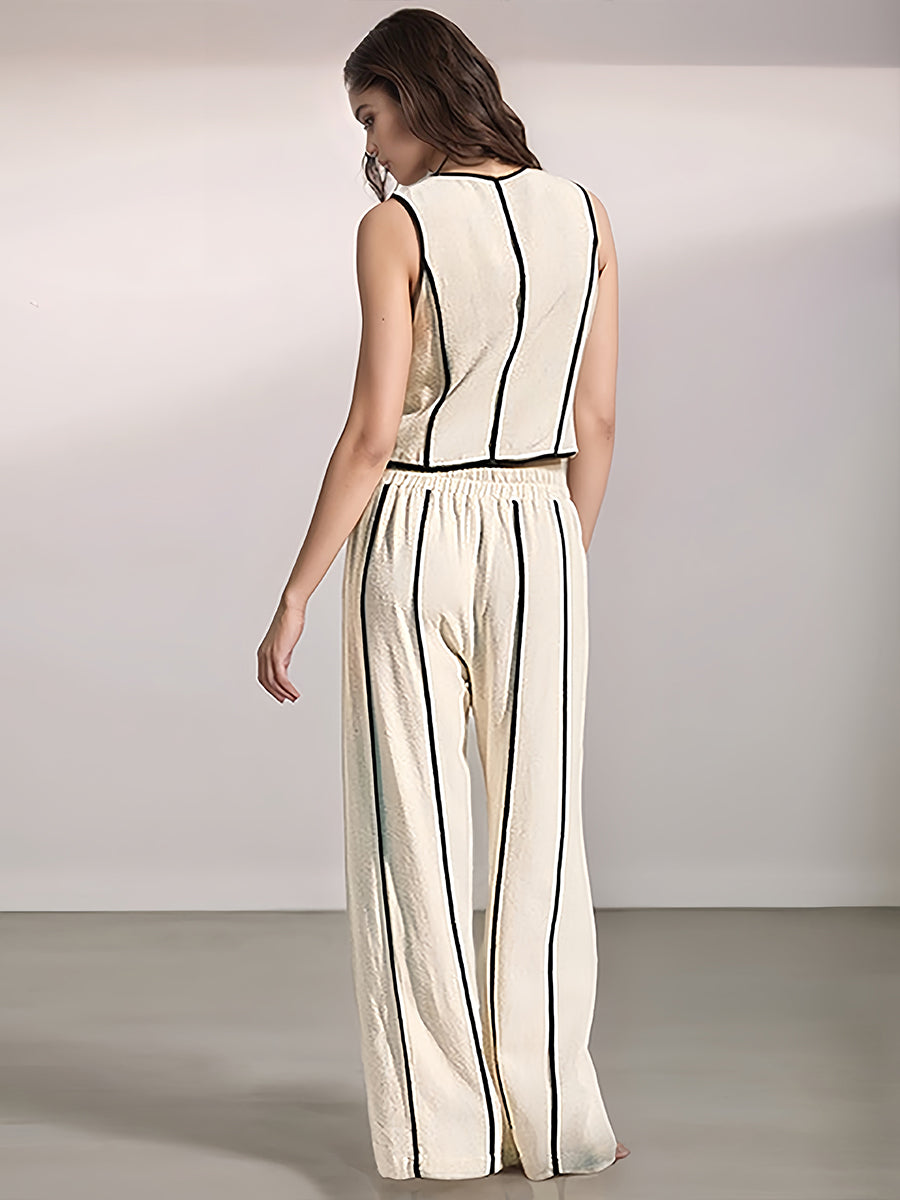 Şık ve çok yönlü bu oversize takım, vücuda oturan kolsuz yelek ve rahat geniş paça pantolonuyla konforu ve tarzı bir arada sunar. Her ortam için ideal, hem günlük hem de özel kombinlerinizde kullanabilirsiniz.