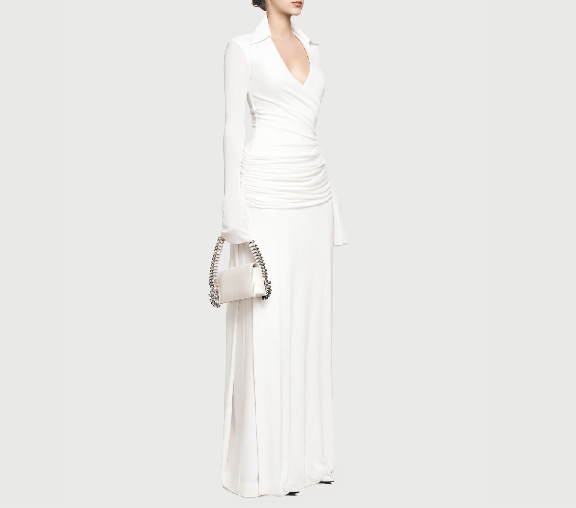 Alara Yaka Detaylı Drapeli Maxi Elbise, zarif gömlek yaka tasarımı ve akıcı drapeleriyle lüksün en güzel yansımasıdır. Özenle seçilmiş kaliteli kumaşlardan üretilen bu elbise, konfor ve şıklığı bir arada sunar. Gardırobunuza sofistike ve özel bir dokunuş katmak için ideal bir parçadır.