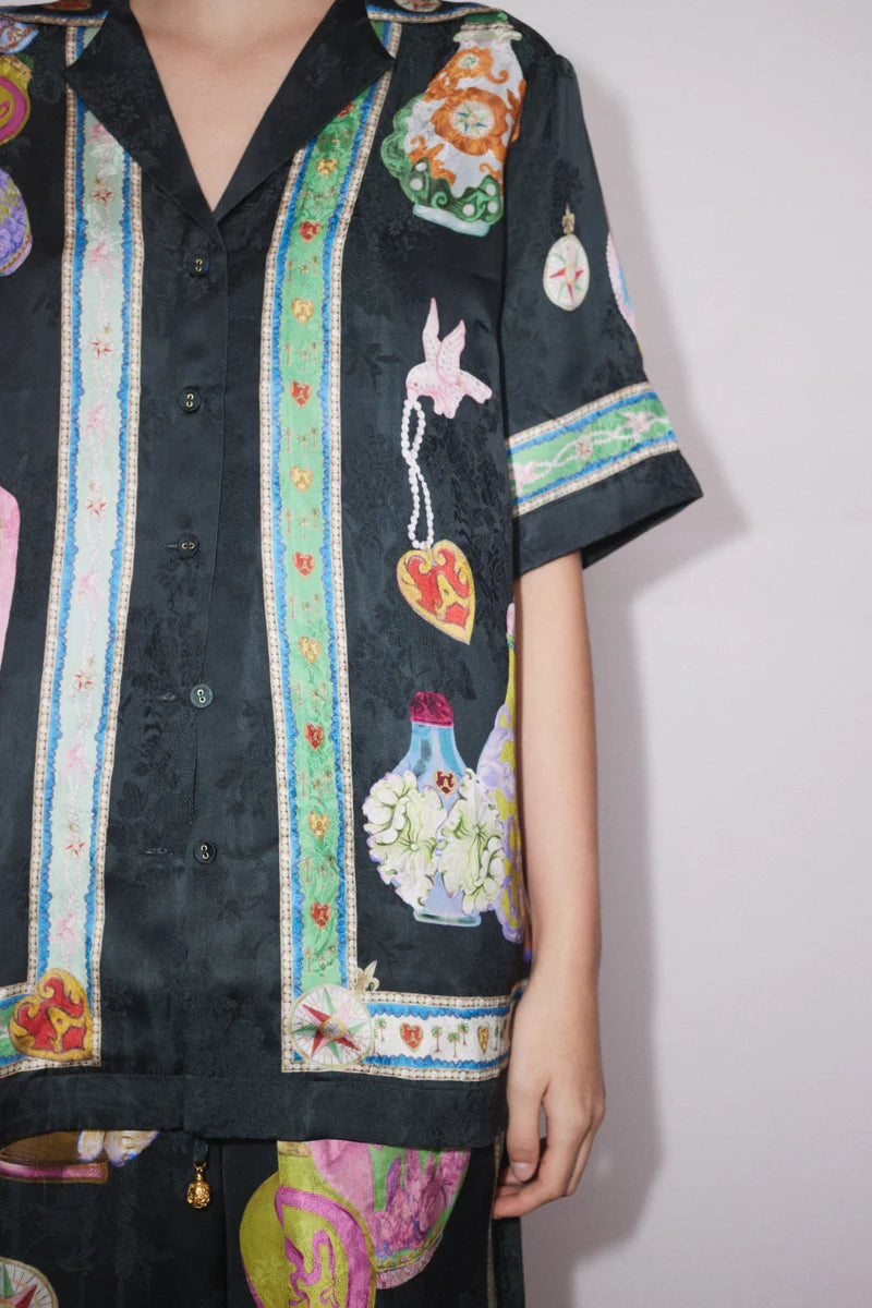 Renkli desenleri ve rahat kesimiyle baharın enerjisini yansıtan kısa kollu pantolon takımı. Oversize tasarımı ve yumuşak dokusuyla günlük stilinize eğlenceli ve canlı bir dokunuş katıyor.