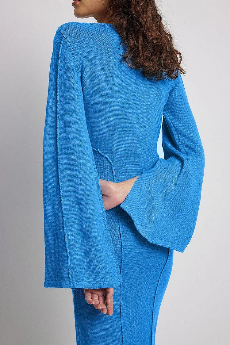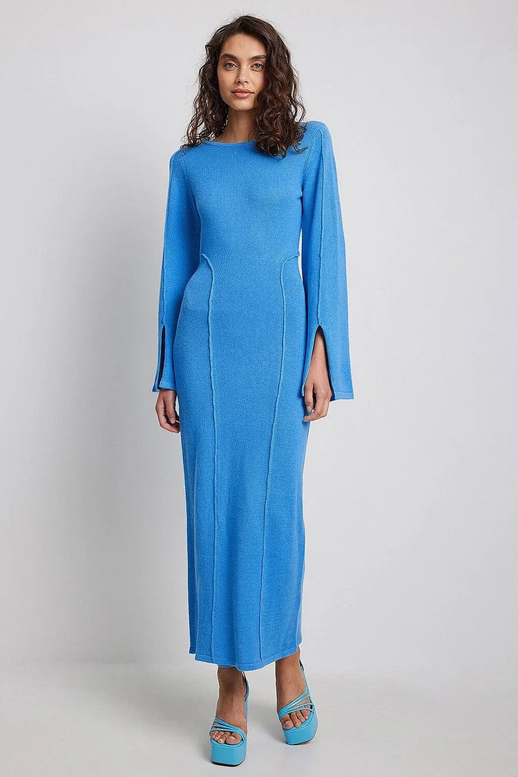 Konfor ve şıklığı bir arada sunan Elora Mavi Triko Maxi Elbise, yumuşak dokusu ve modern tasarımıyla her mevsim stilinizi tamamlar. Yuvarlak yaka, geniş kollar ve yırtmaç detayıyla hem zarif hem de rahat bir siluet oluşturur.