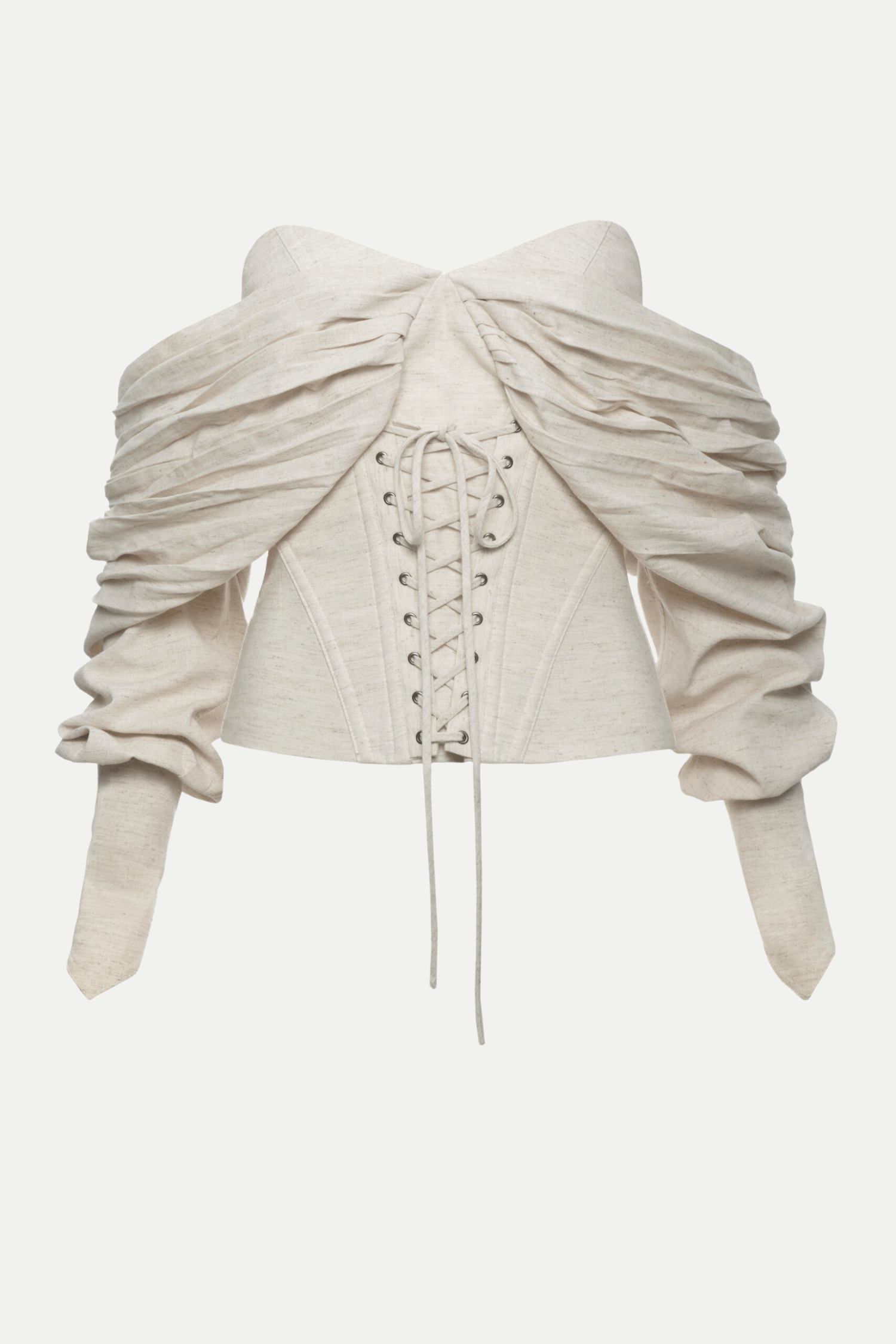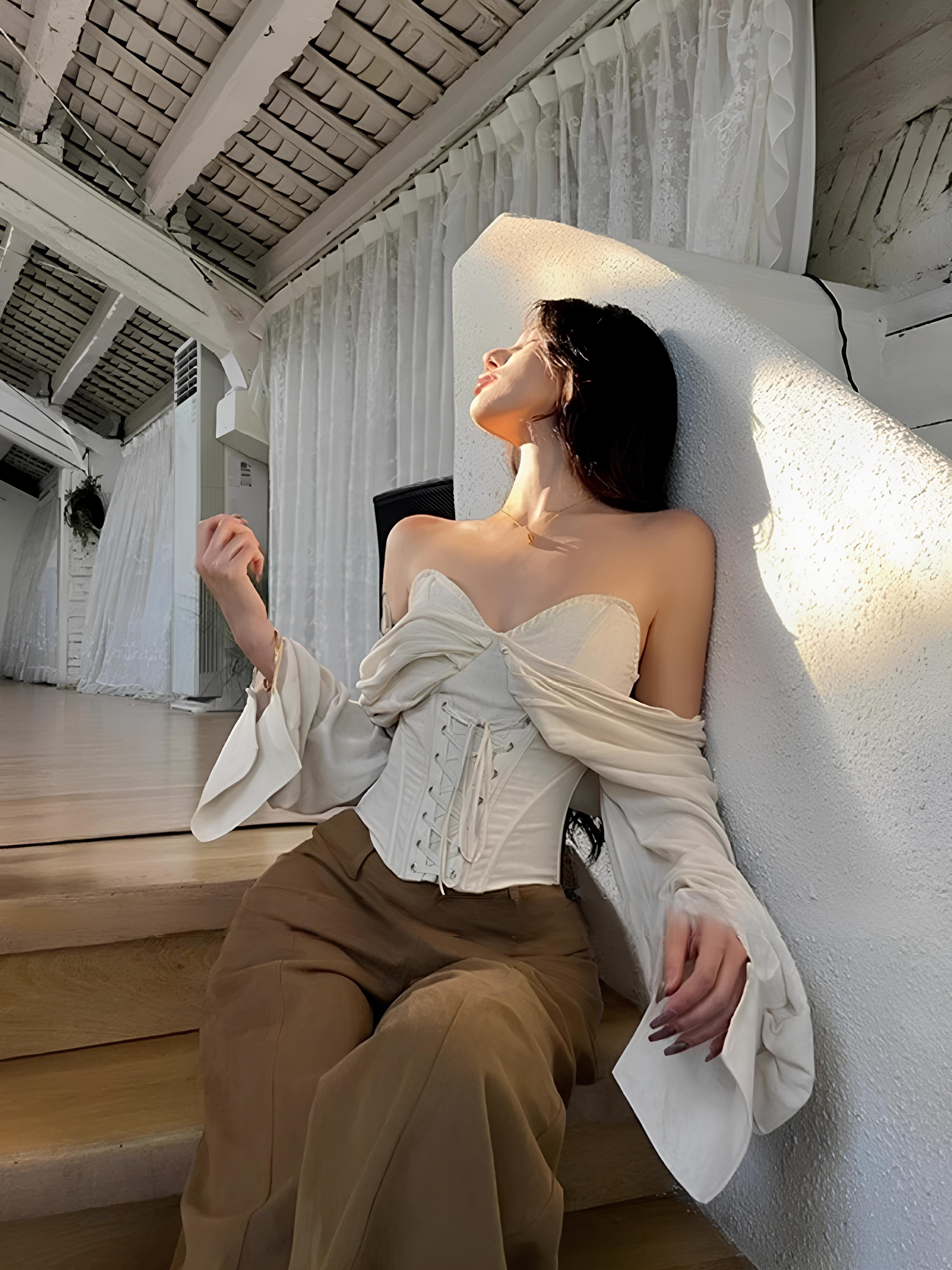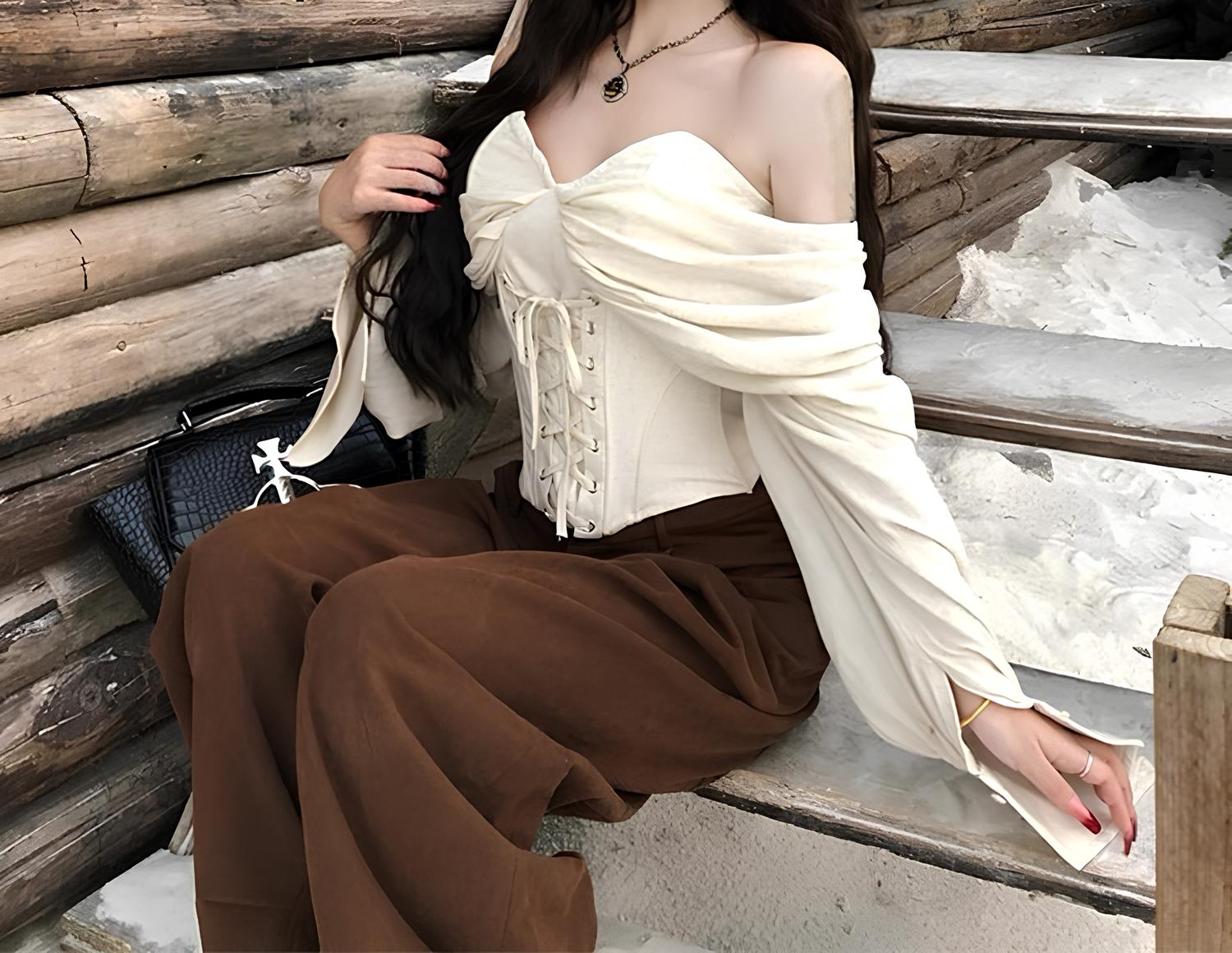 Cesur ve iddialı tarzınızı ortaya çıkarın! Omuz dekolteli ve bağcıklı korse tasarımıyla feminenliği güçlü bir şekilde yansıtan Alina, özgüven ve çekiciliğin sembolü. Stil oyunuzu bir üst seviyeye taşıyacak bu özel parça ile kalabalıktan sıyrılın.