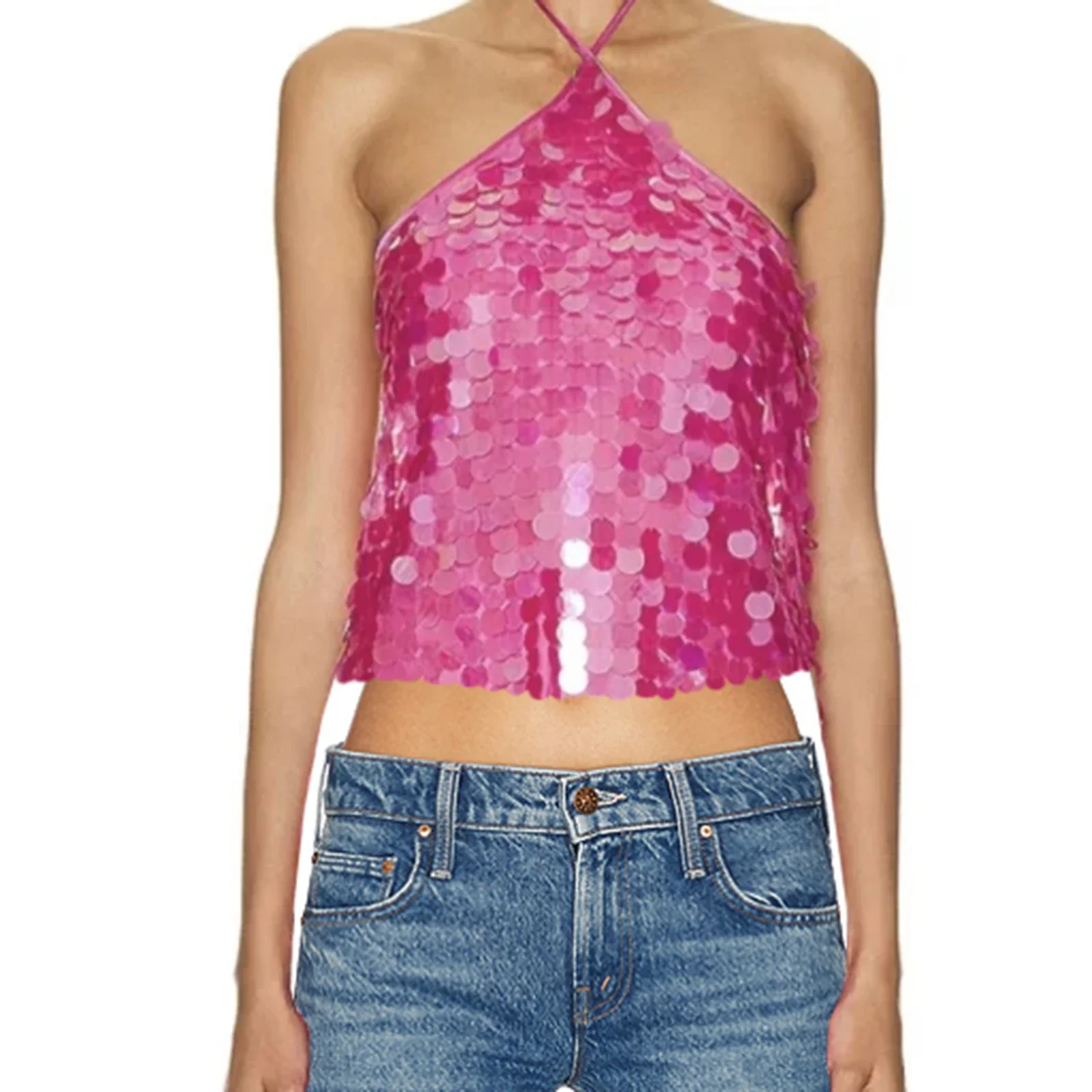 Celinne Halter Yaka Bluz, ışıltılı payetleri ve zarif sırt dekoltesiyle parti şıklığının vazgeçilmez parçası. İnce bağlama detaylarıyla ayarlanabilir formu, vücudu nazikçe saran yapısıyla hem feminen hem de modern bir duruş sunar. Hafif esnek kumaşı sayesinde konforlu bir kullanım sağlarken, iddialı tasarımıyla tüm gözleri üzerinize çeker.