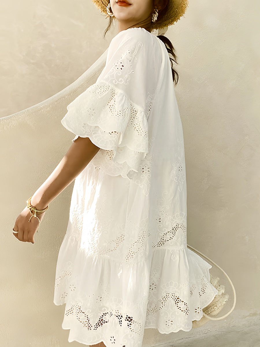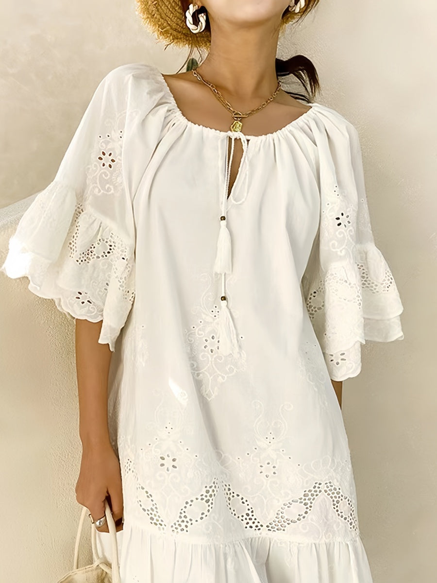 Beyaz Nakışlı Elbise
