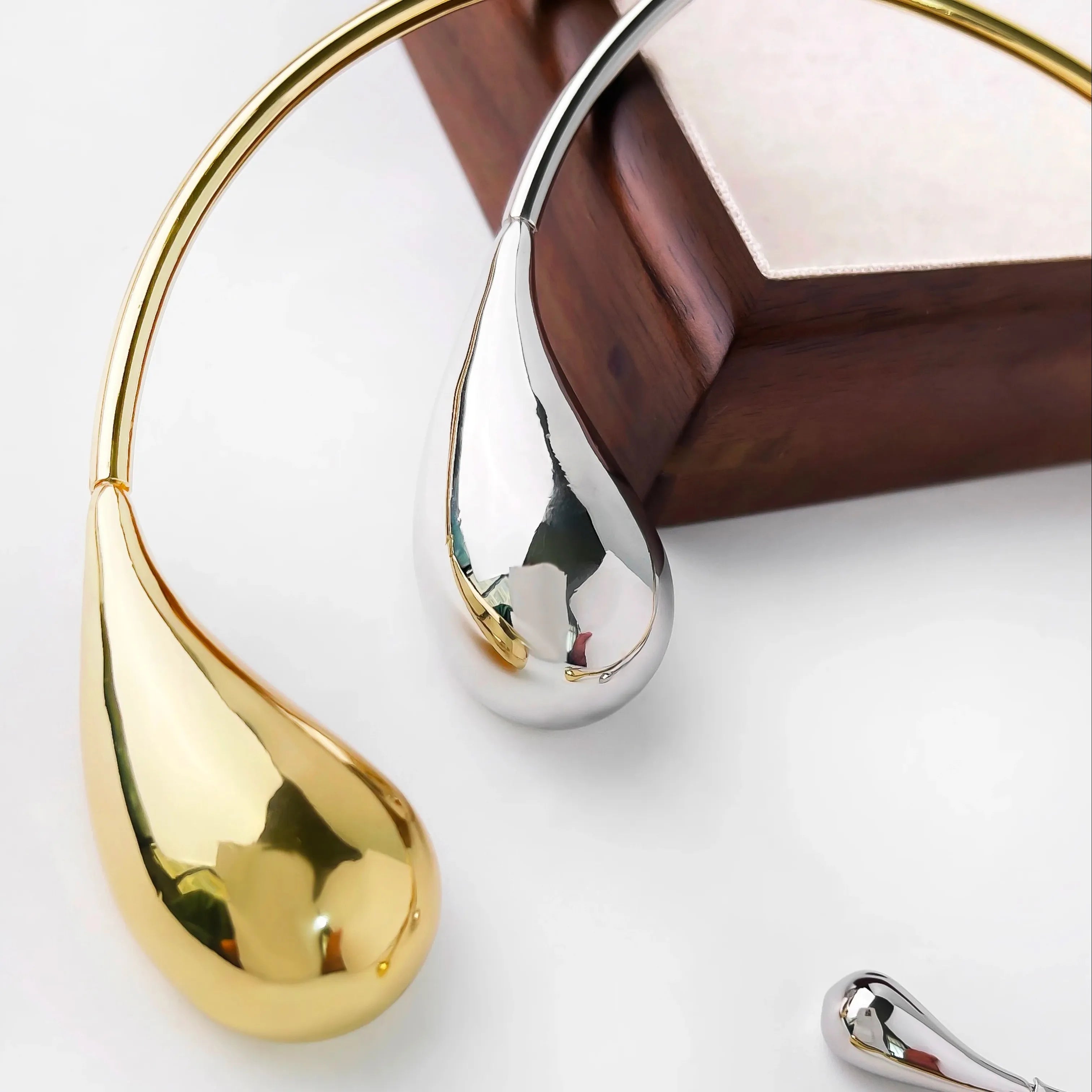 Eşsiz açık formu ve su damlası şeklindeki tasarımıyla modern bir duruş sergileyen bu kolye, tek başına kullanıldığında şıklığını ön plana çıkarırken, katmanlı şekilde takıldığında etkileyici bir görünüm sunar.