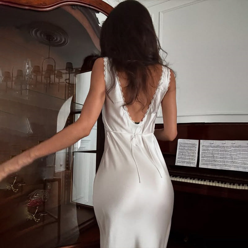Zarafeti ve feminenliği bir araya getiren Elena, yaz davetleri ve özel anlar için mükemmel bir seçimdir. Pürüzsüz saten dokusu ve zarif dantel V-yaka detayıyla romantik bir hava sunarken, ince askıları ve doğal bel hattı vücuda zarif bir şekilde oturur.