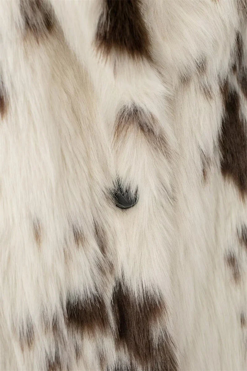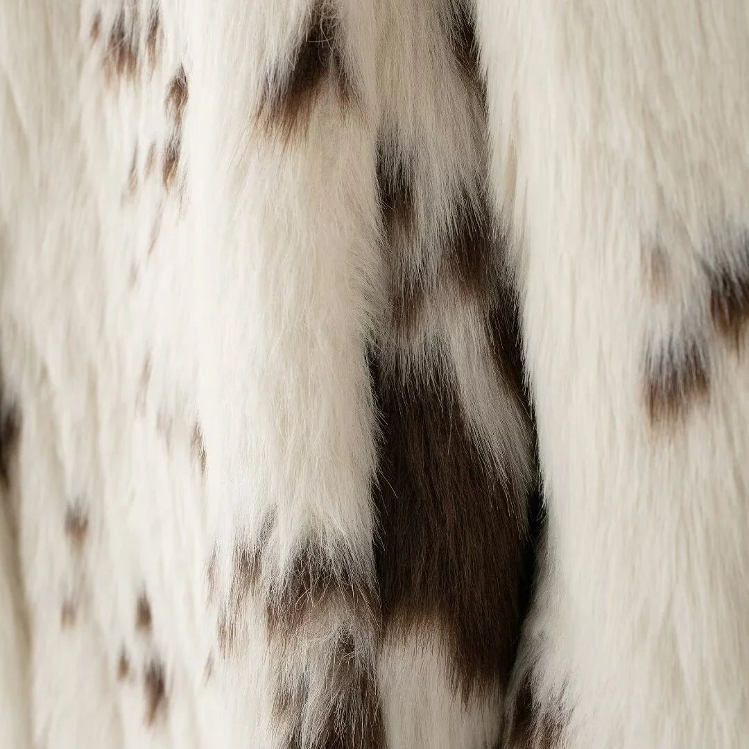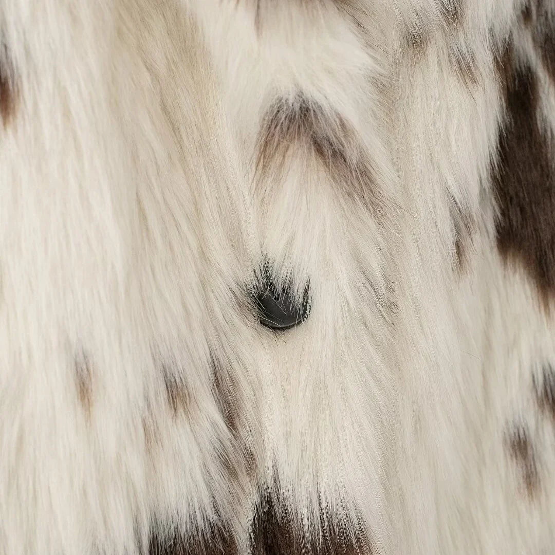 Alvina, hayvan deseninin iddialı görünümünü yumuşak kürk dokusuyla birleştiren uzun ve sıcak bir kabandır. Kalın yapısı koruyucu bir sıcaklık sunarken, bol kesimi rahat bir kullanım sağlar. Gömlek yaka formu parçaya dengeli bir şıklık katar. Tek sıra düğmeli kapama klasik bir dokunuş oluşturur. Hem güçlü hem de zarif bir dış parça arayanlar için ideal bir tercihtir.