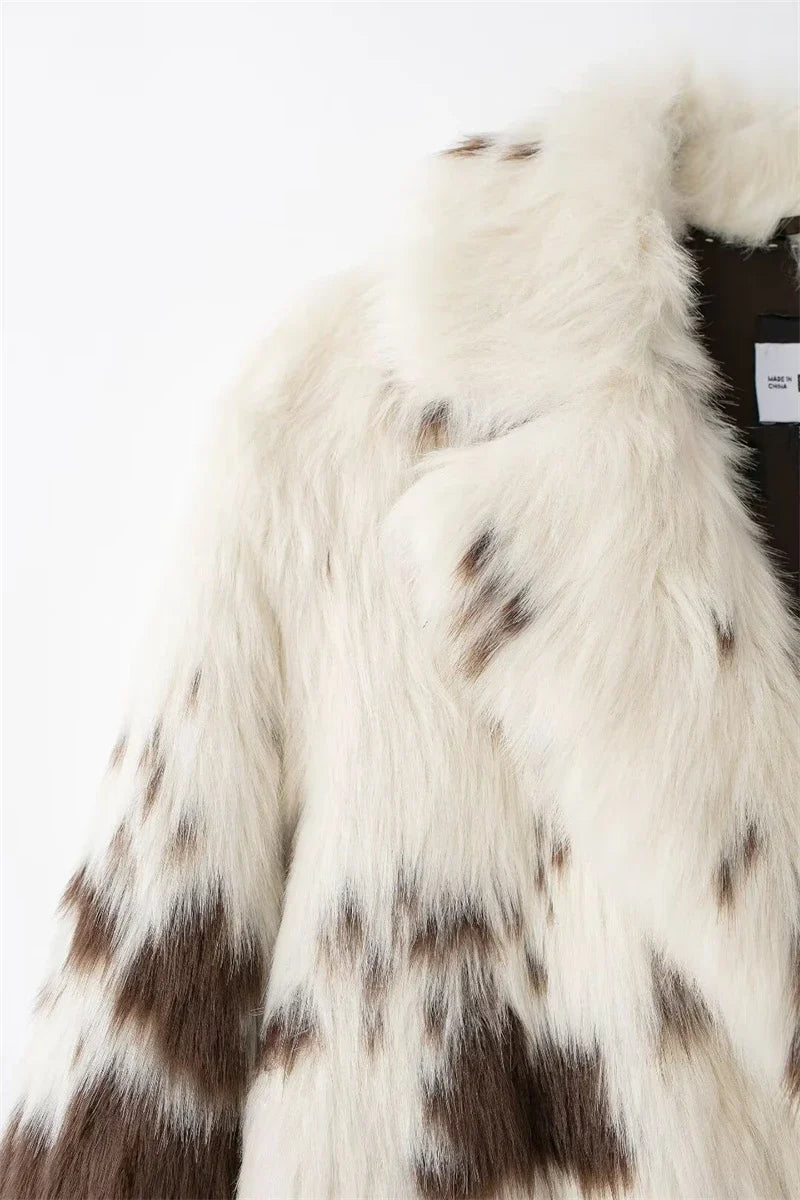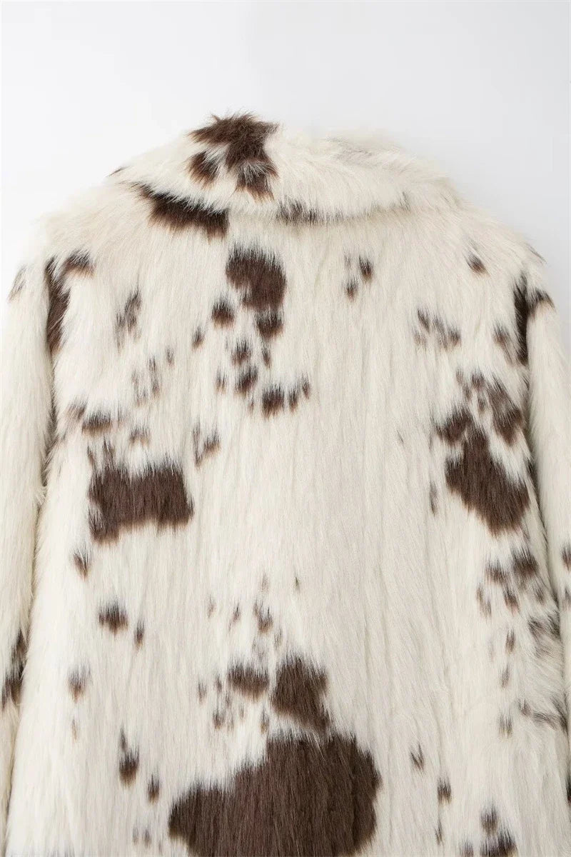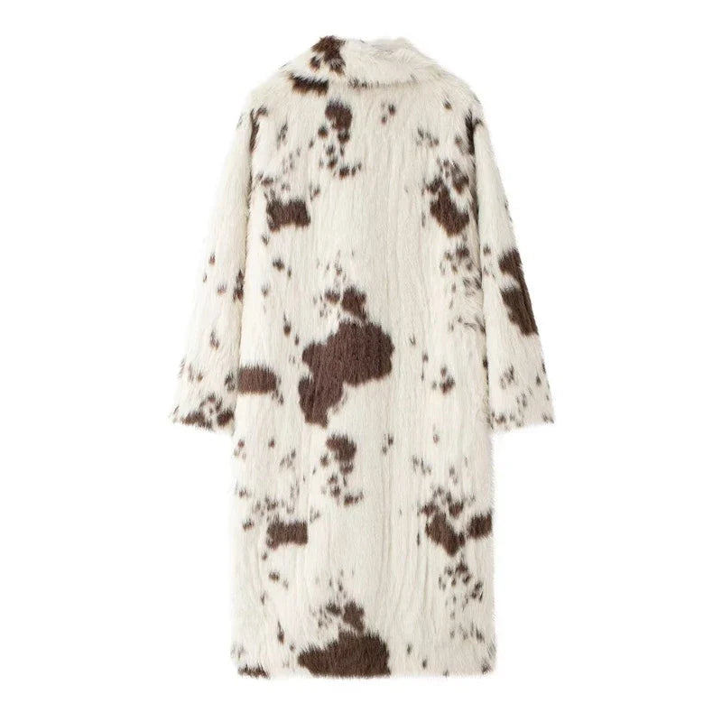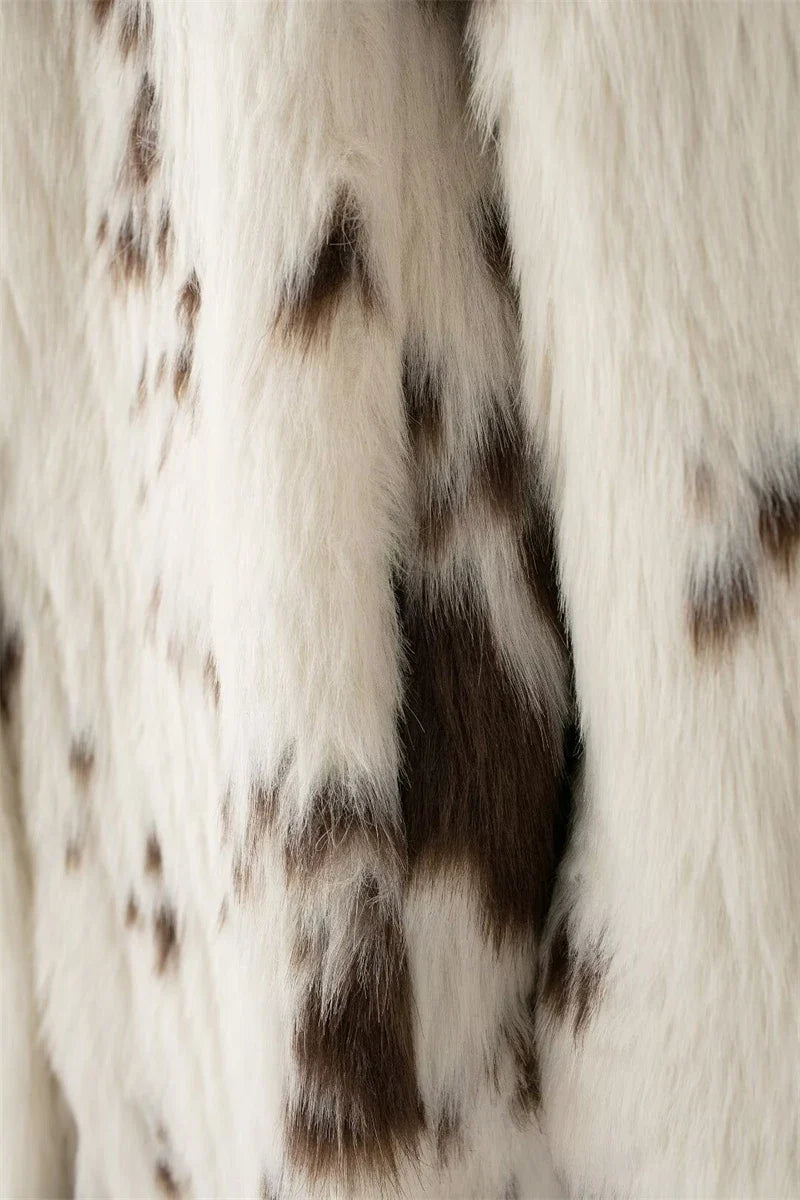 Alvina, hayvan deseninin iddialı görünümünü yumuşak kürk dokusuyla birleştiren uzun ve sıcak bir kabandır. Kalın yapısı koruyucu bir sıcaklık sunarken, bol kesimi rahat bir kullanım sağlar. Gömlek yaka formu parçaya dengeli bir şıklık katar. Tek sıra düğmeli kapama klasik bir dokunuş oluşturur. Hem güçlü hem de zarif bir dış parça arayanlar için ideal bir tercihtir.